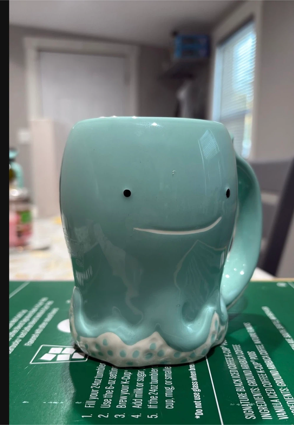 This light blue mug has a cute smiling face design! It's in great condition and ready for your favorite beverage. Perfect for coffee, tea, or hot chocolate