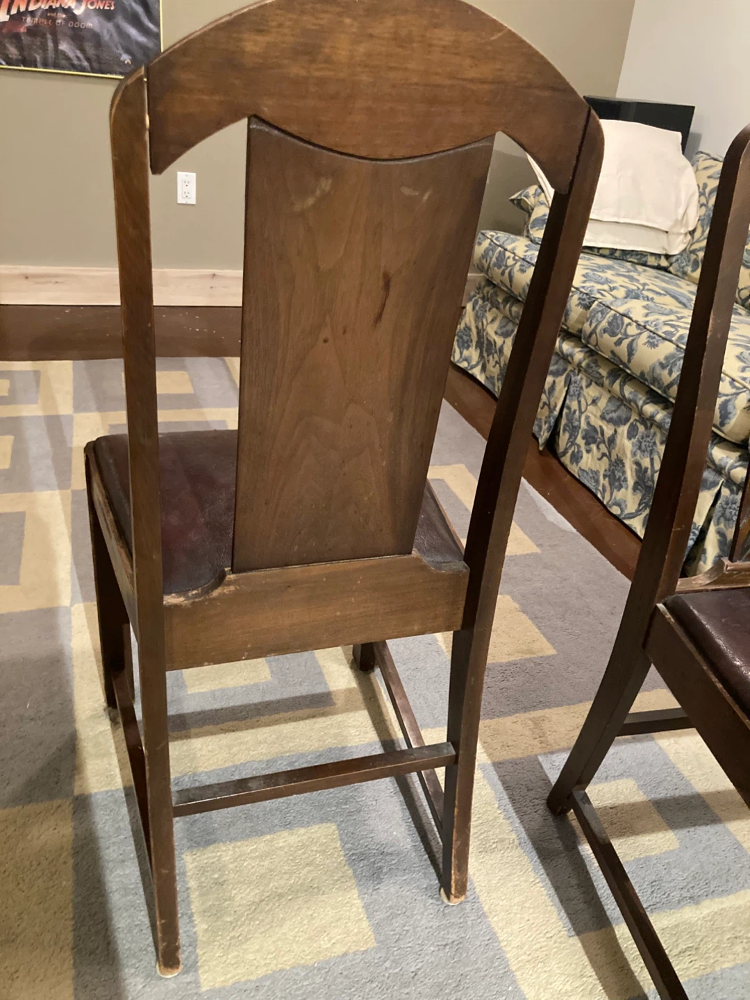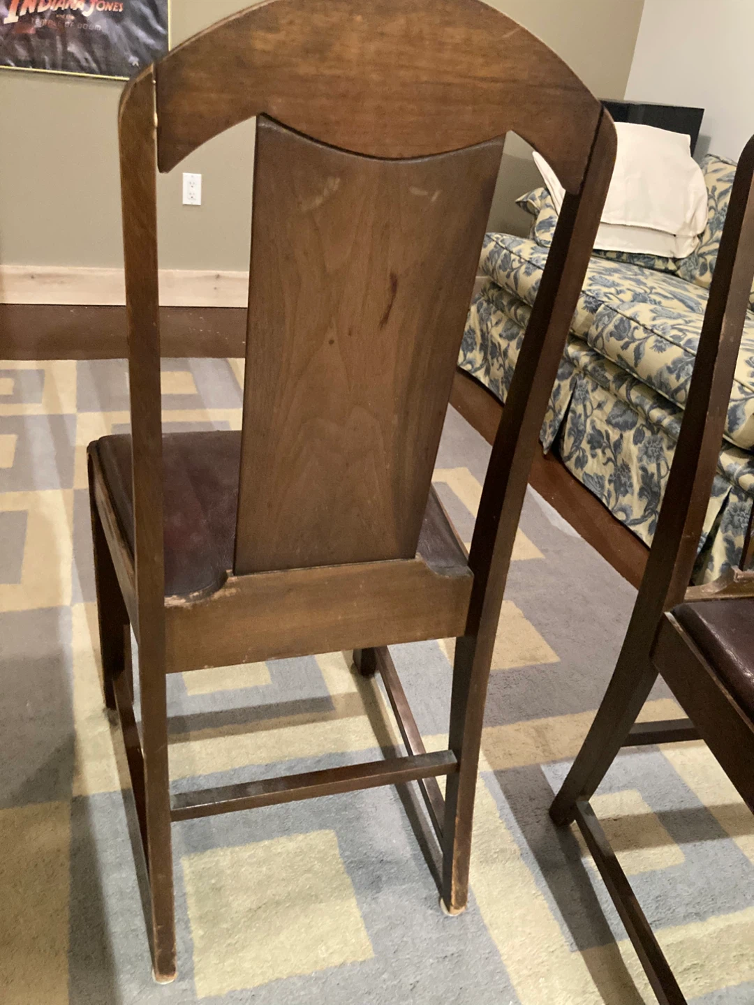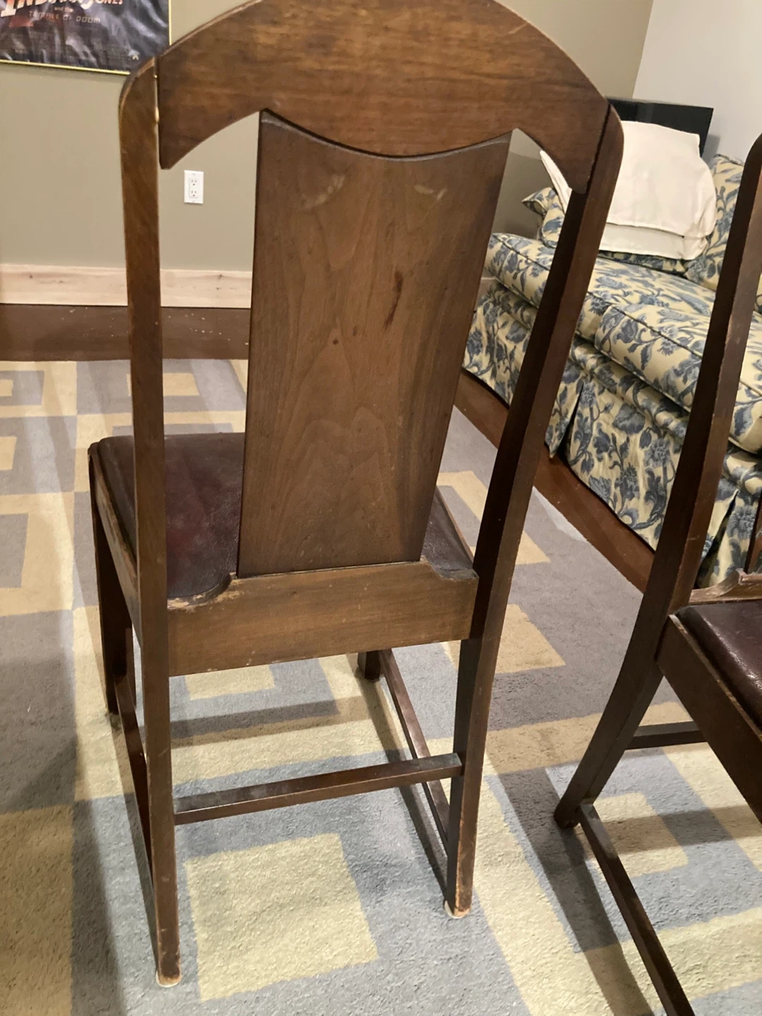 these chairs are the right height for any standard dining table. they are solid wood, with a lightly padded leather seat. they are in decent condition. if you need extra seats for holiday meals this year, try these!