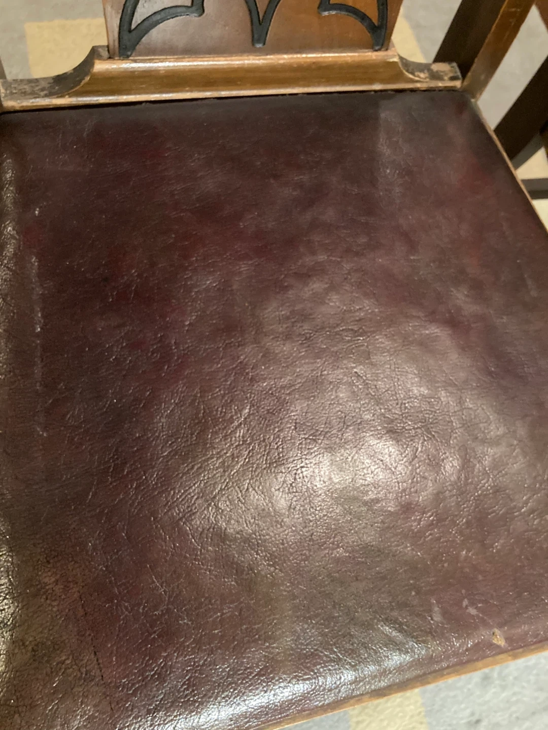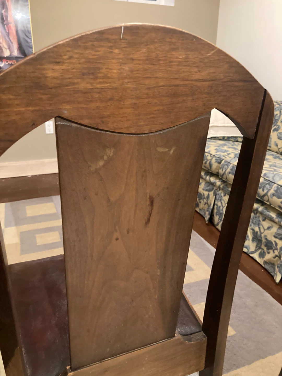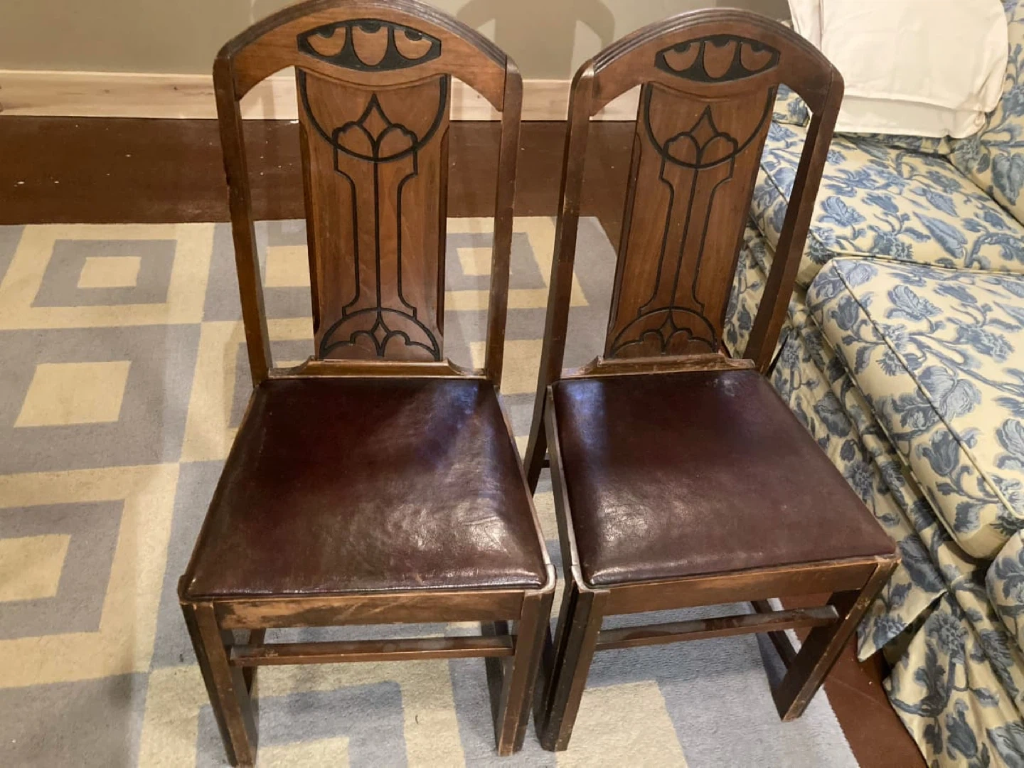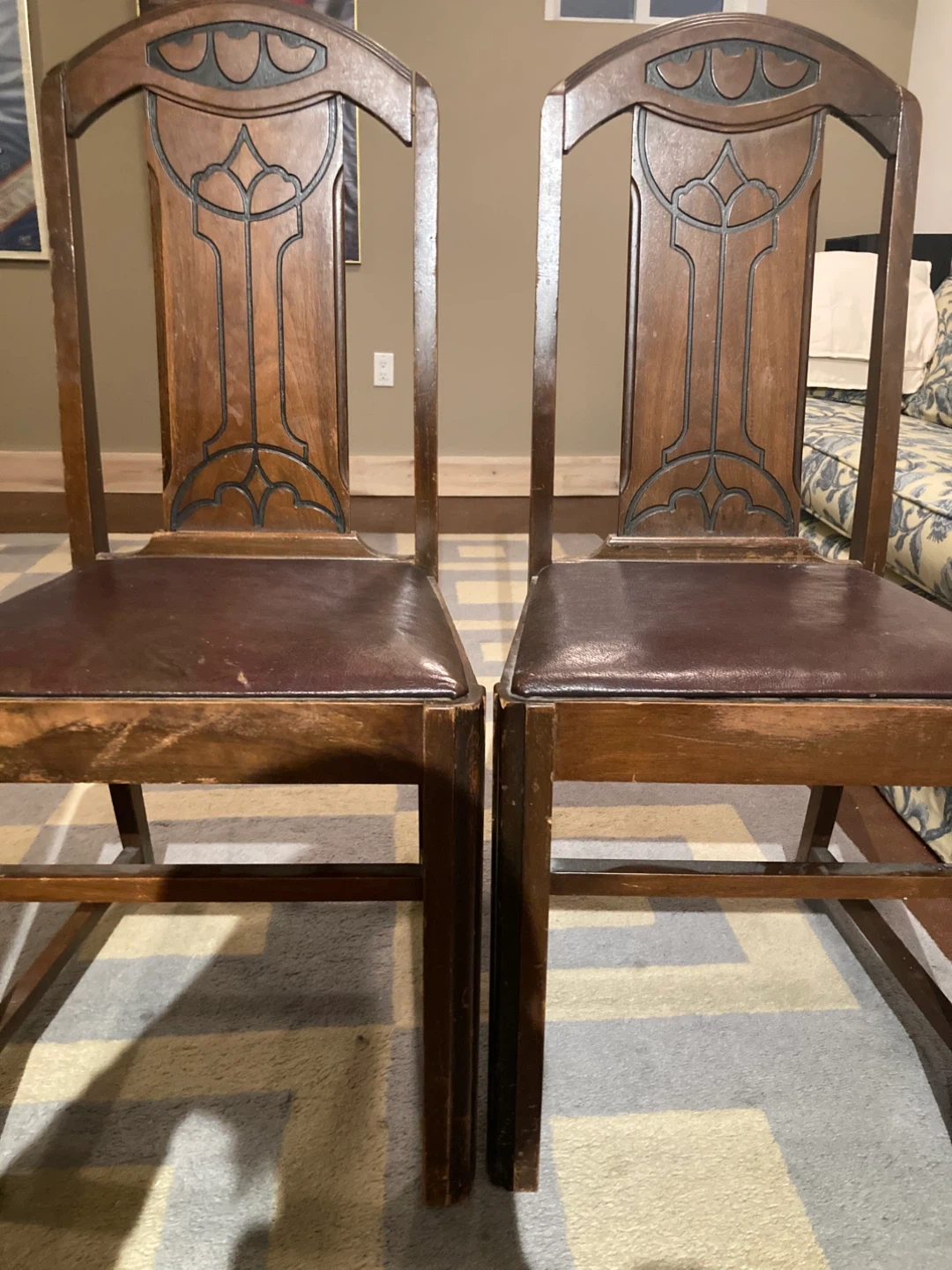 these chairs are the right height for any standard dining table. they are solid wood, with a lightly padded leather seat. they are in decent condition. if you need extra seats for holiday meals this year, try these!