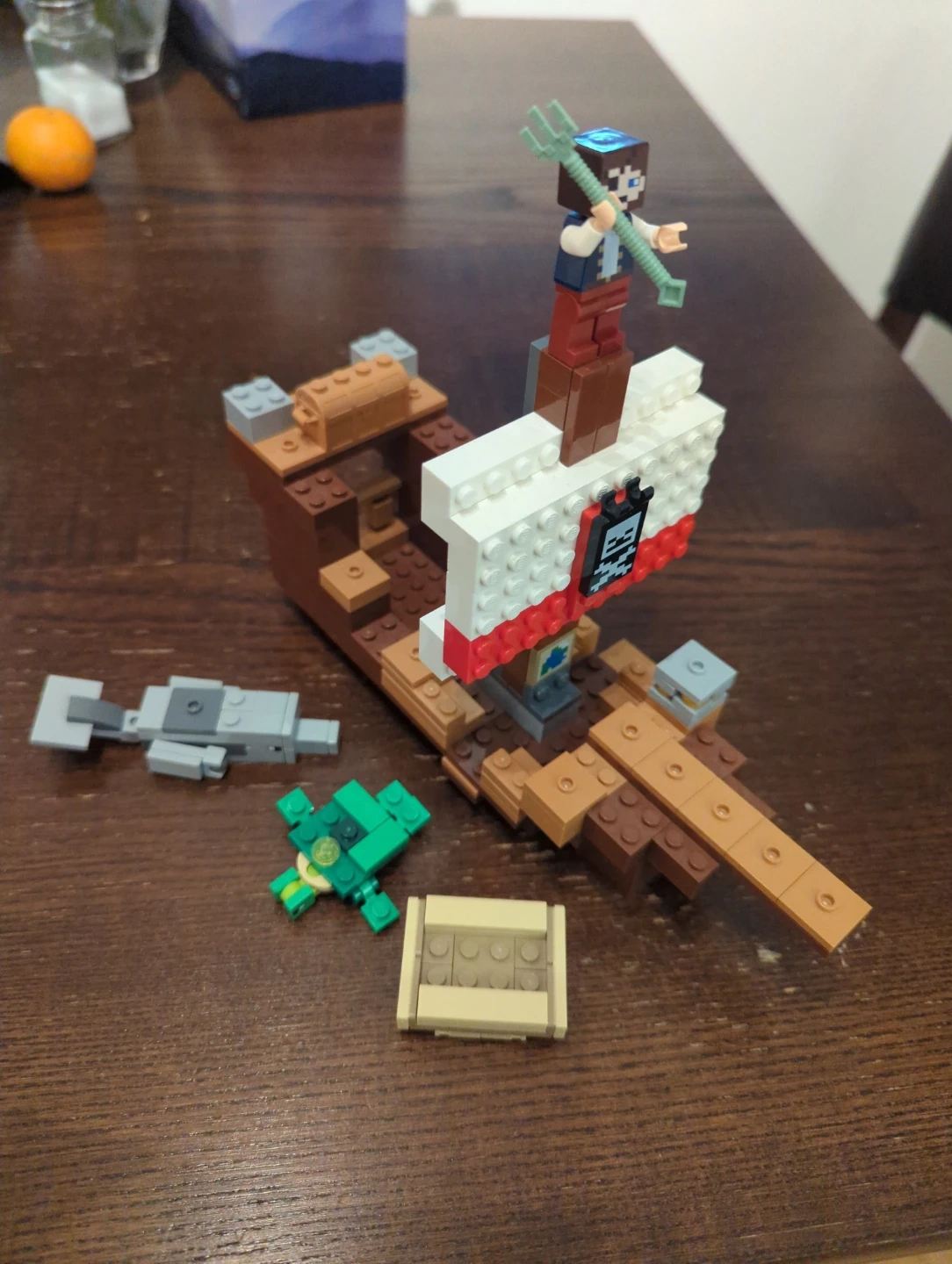 Selling a LEGO Minecraft The Pirate Ship. It looks to be in great condition and includes the ship, a dolfin , a turtle, and a minifigure! Perfect for any Minecraft or LEGO fan
