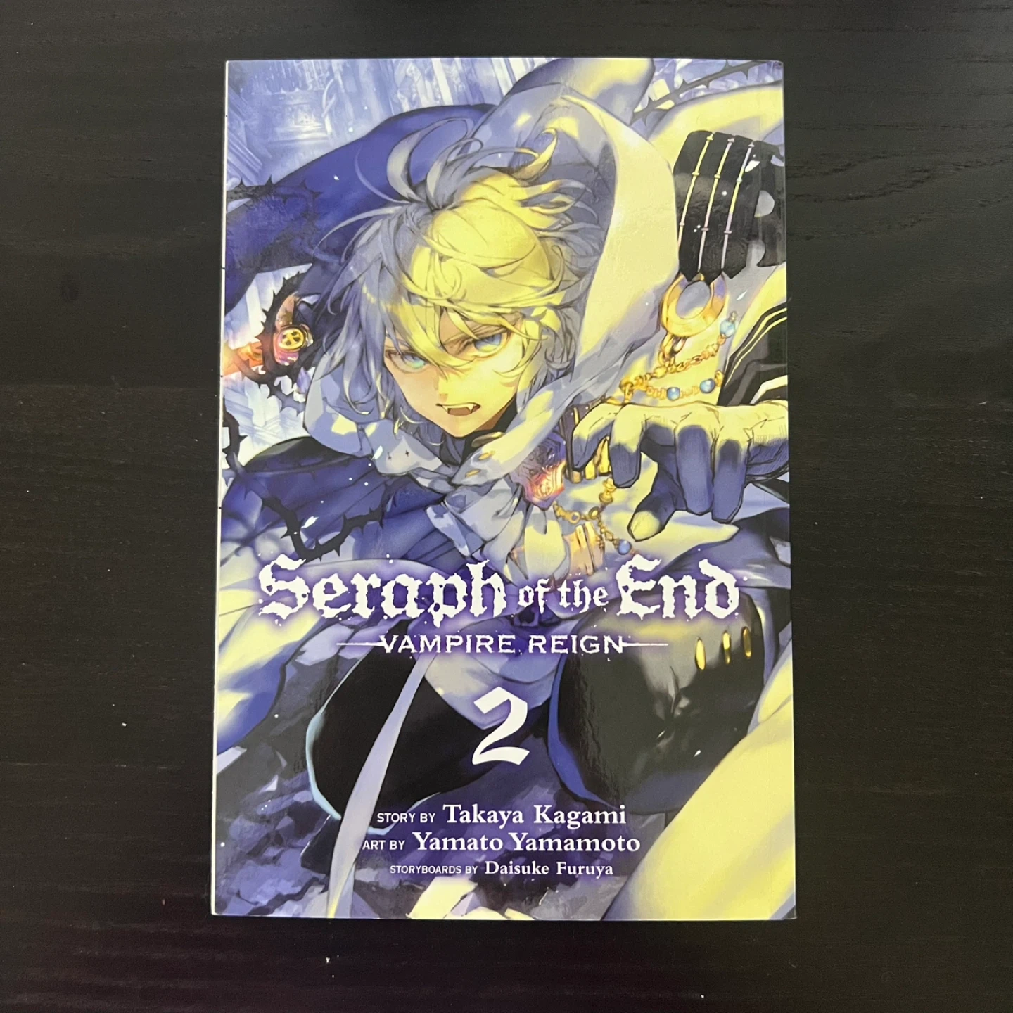 Selling Seraph of the End: Vampire Reign, Vol. 2 manga. This is part of the Black Demon Series Cursed Gear. Story by Takaya Kagami, art by Yamato Yamamoto, and storyboards by Daisuke Furuya. The mini poster is just missing. Pickup sandalwood and Kennedy