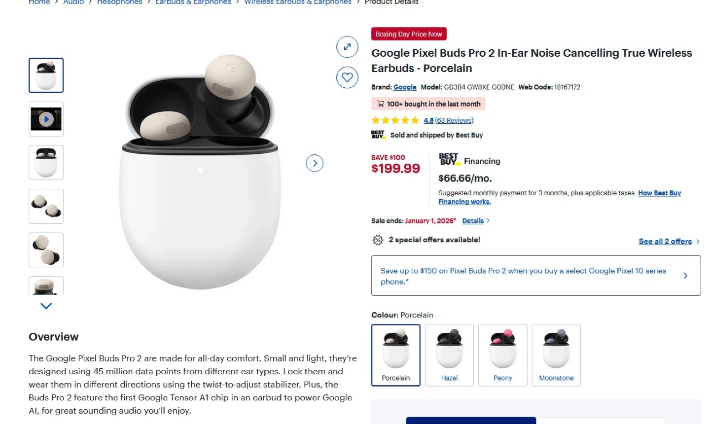 Selling a pair of Google Pixel Buds Pro 2 in the Porcelain colour. These earbuds are designed for all-day comfort, using .45 million data points from different ear types. They're small, light, and feature the Google Tensor-I chip for great sound using Google AI. Originally Price for $199.99 Plus Tax