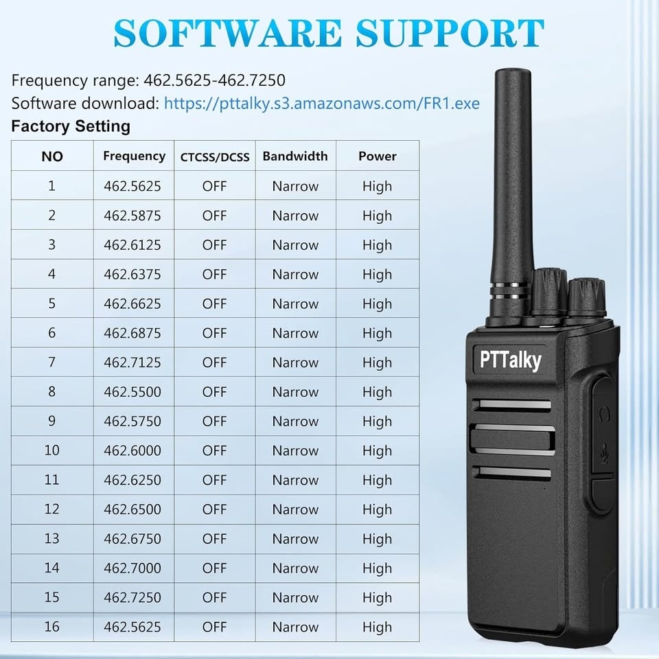 【Software Support】You can download software to edit the functions of the FR1 walkie talkie. Frequency Range: FRS ONLY. CTCSS/DCS can be edited. Bandwidth ( Narrow) Cannot be edited.