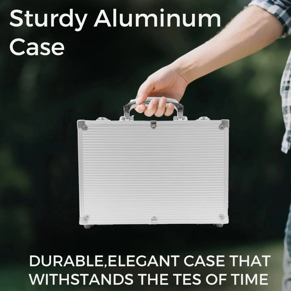 Embrace mobility with our Premium aluminum case. Reinforced corners ensure sturdiness while dual latches secure your Poker essentials. With compartments for organized storage and a swivel handle for convenience, this case is your Flawless Poker companion