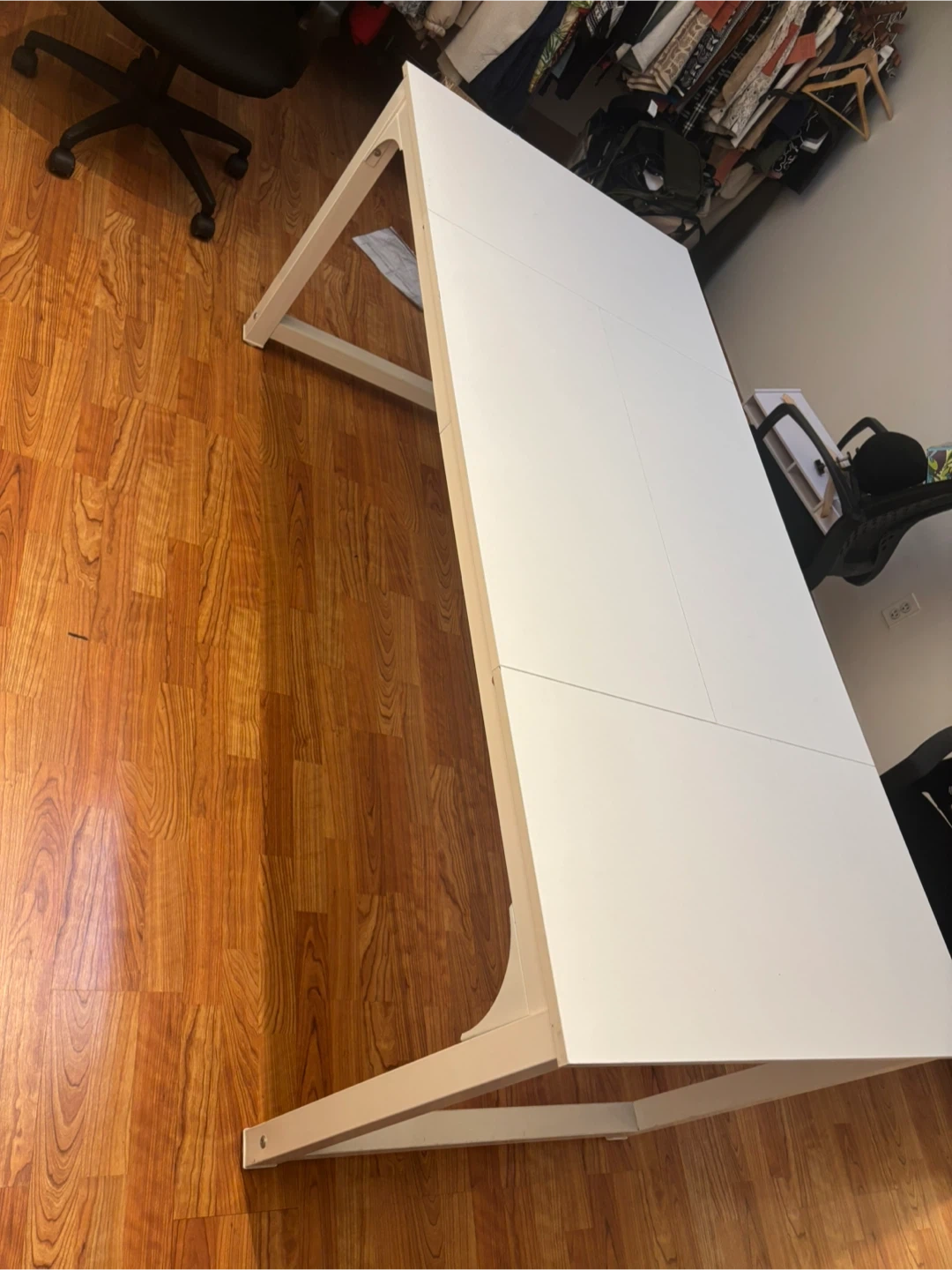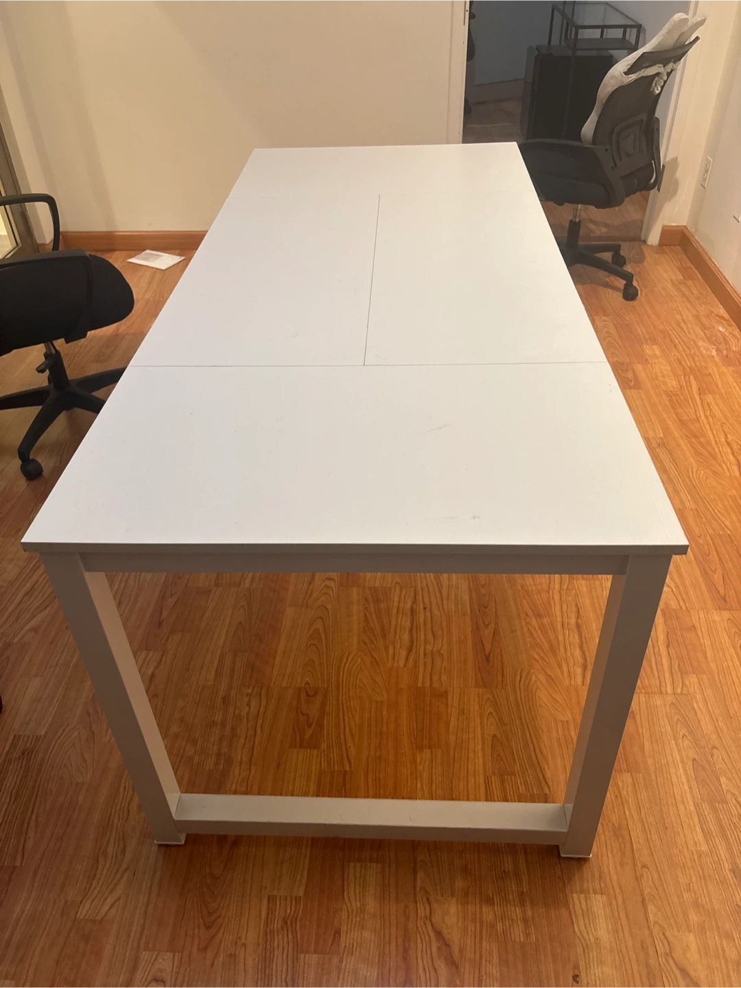 Selling a white dining table. It's in great condition and ready for a new home! Perfect for a dining room or kitchen space. Or you can use it for your work table.