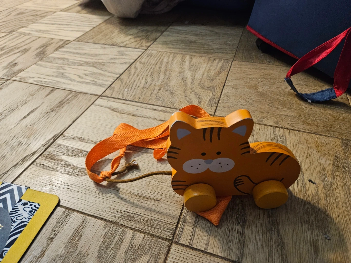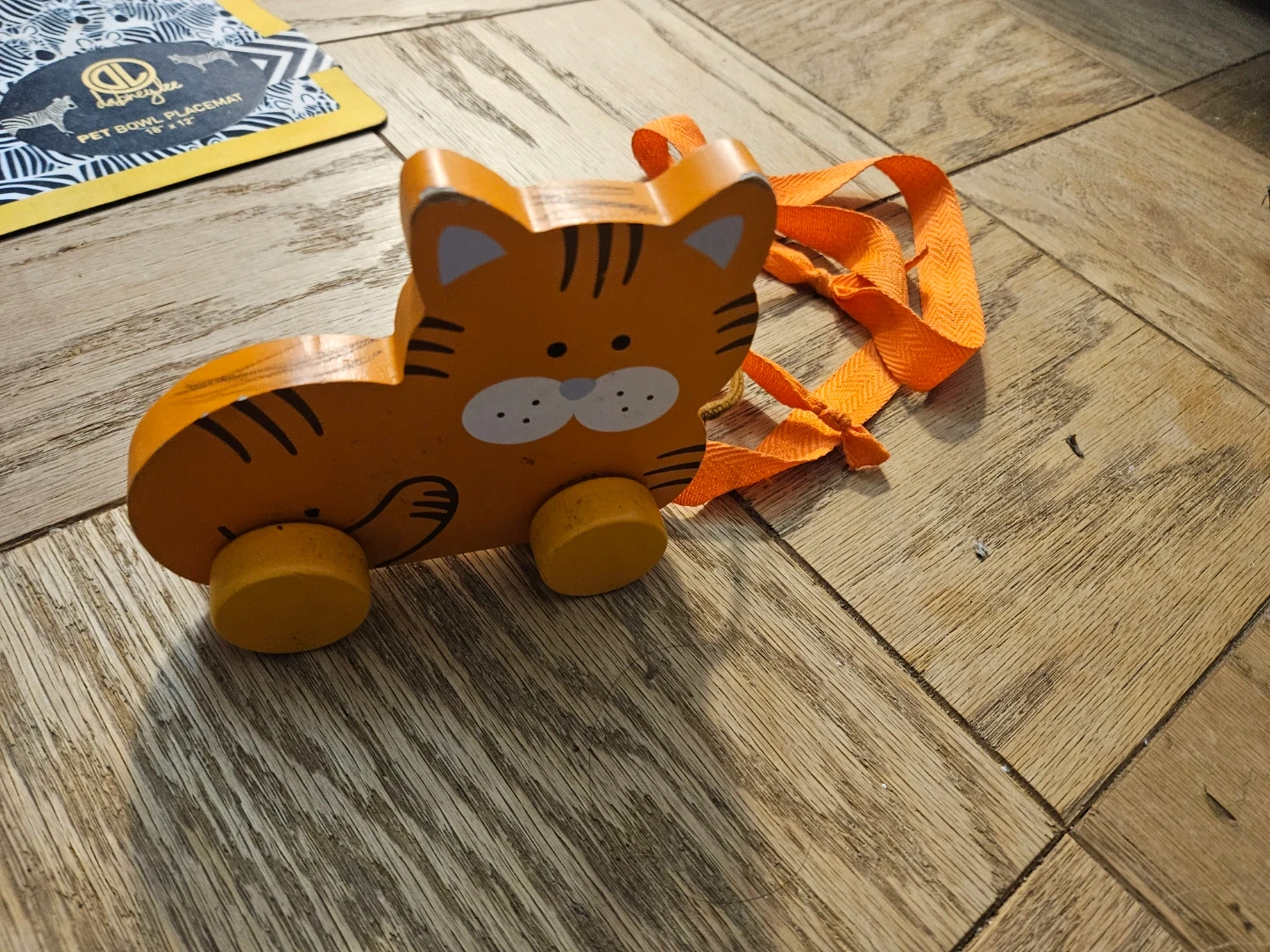 #gifting Orange Wooden Pull Toy Cat