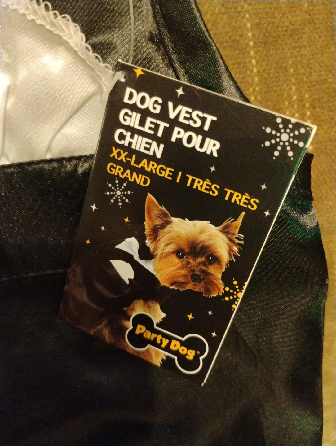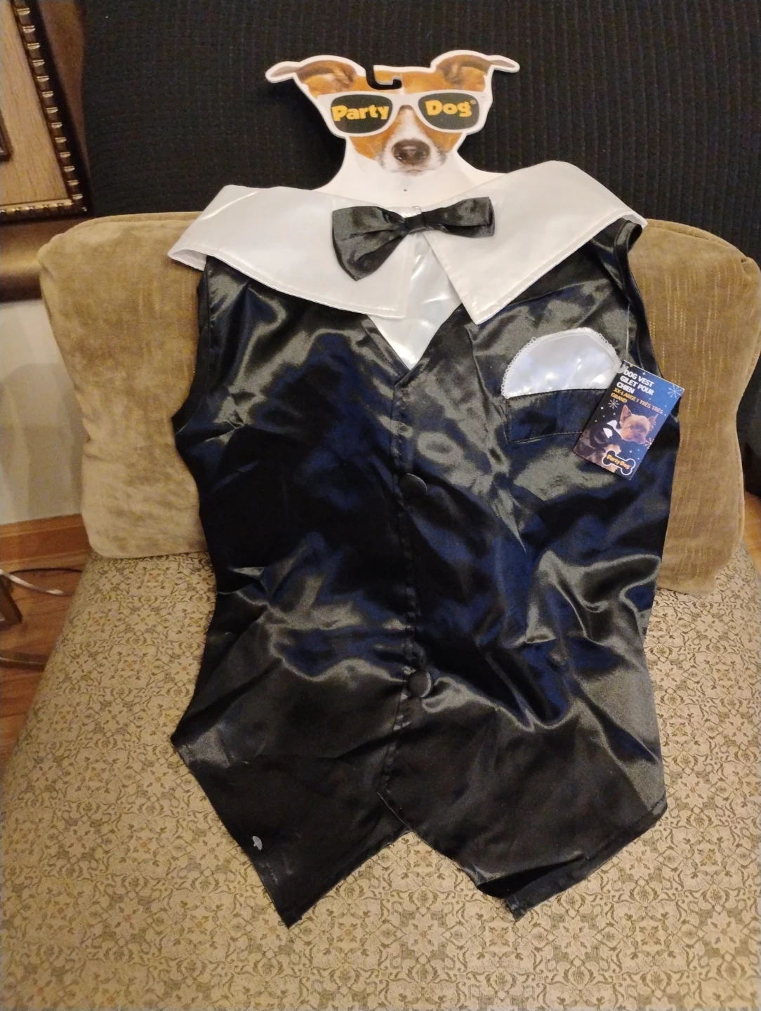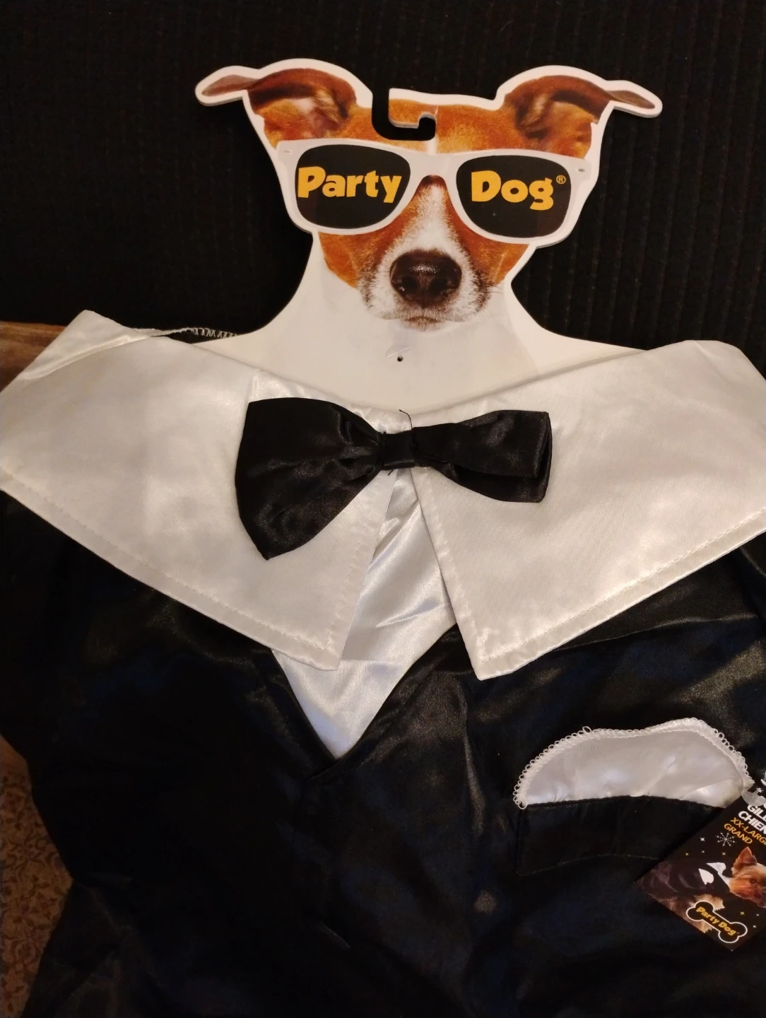Here's a Party Dog tuxedo vest for your furry friend! It's a size XX-Large and features a classic black and white design. Perfect for special occasions, with sturdy Velcro for easy on & off. New, great to dress up ur dog for that Xmas or New Year's party! Pickup in Maspeth Queens blks from the Long Island Expwy, we are smoke free home.