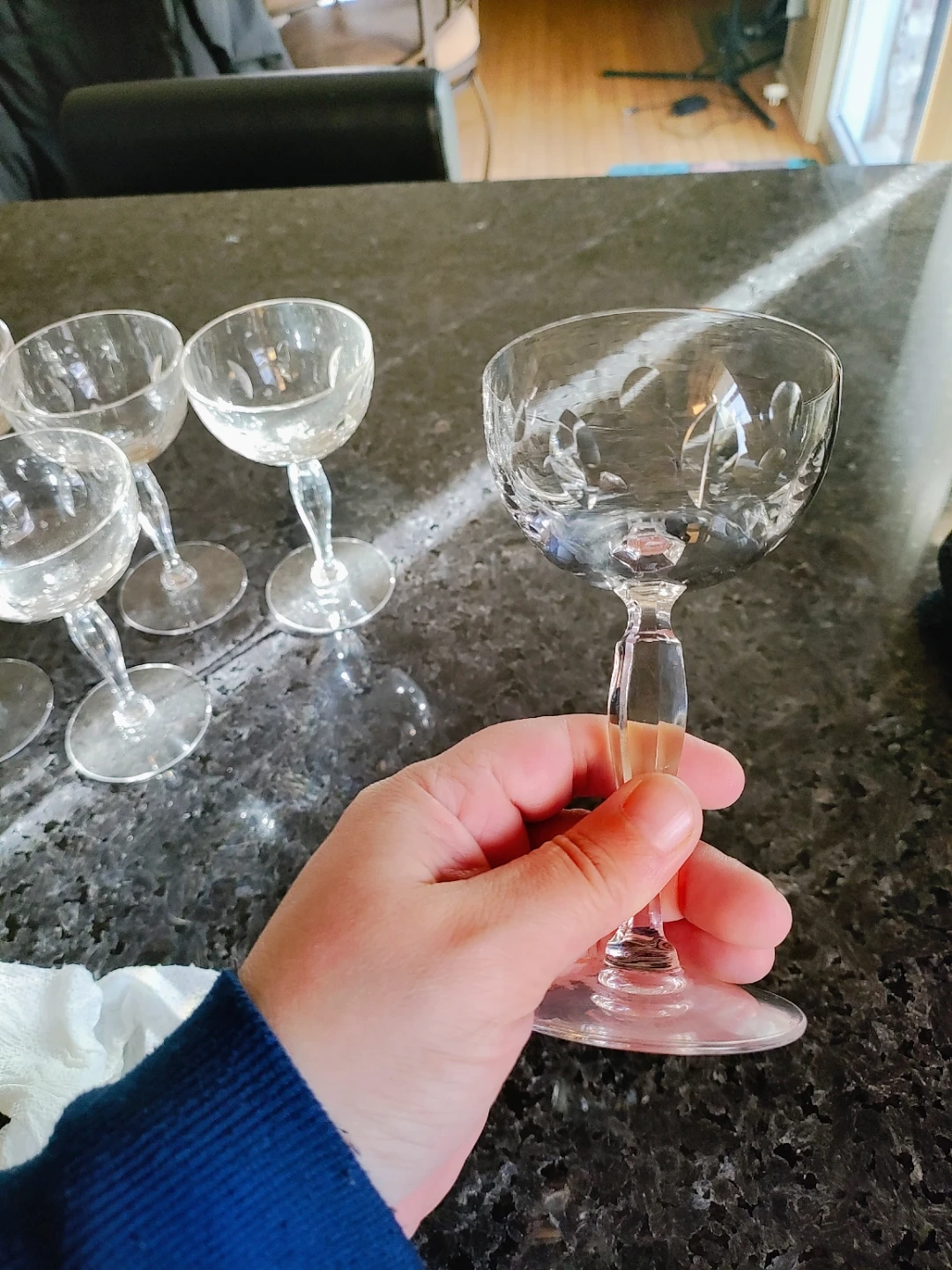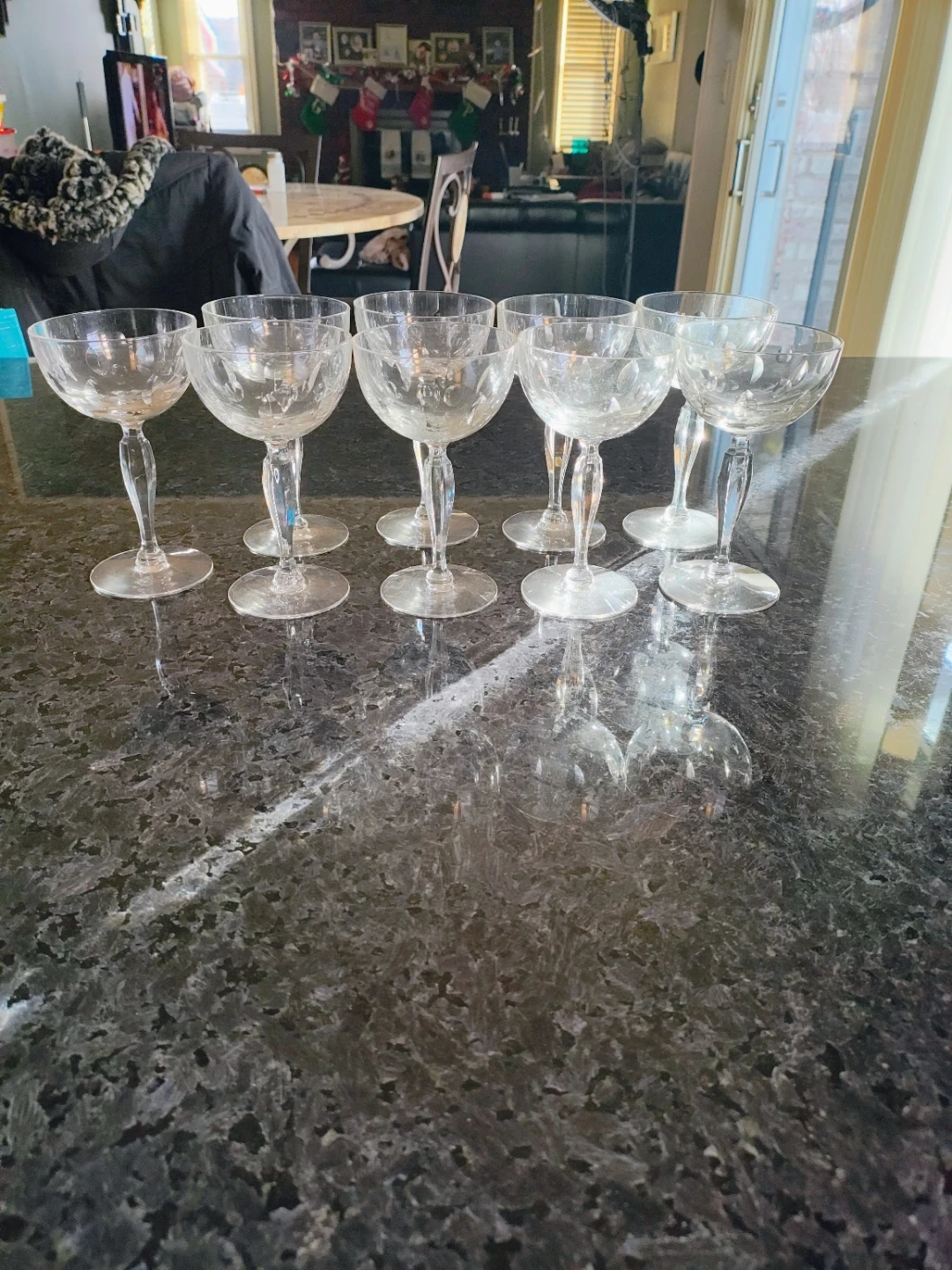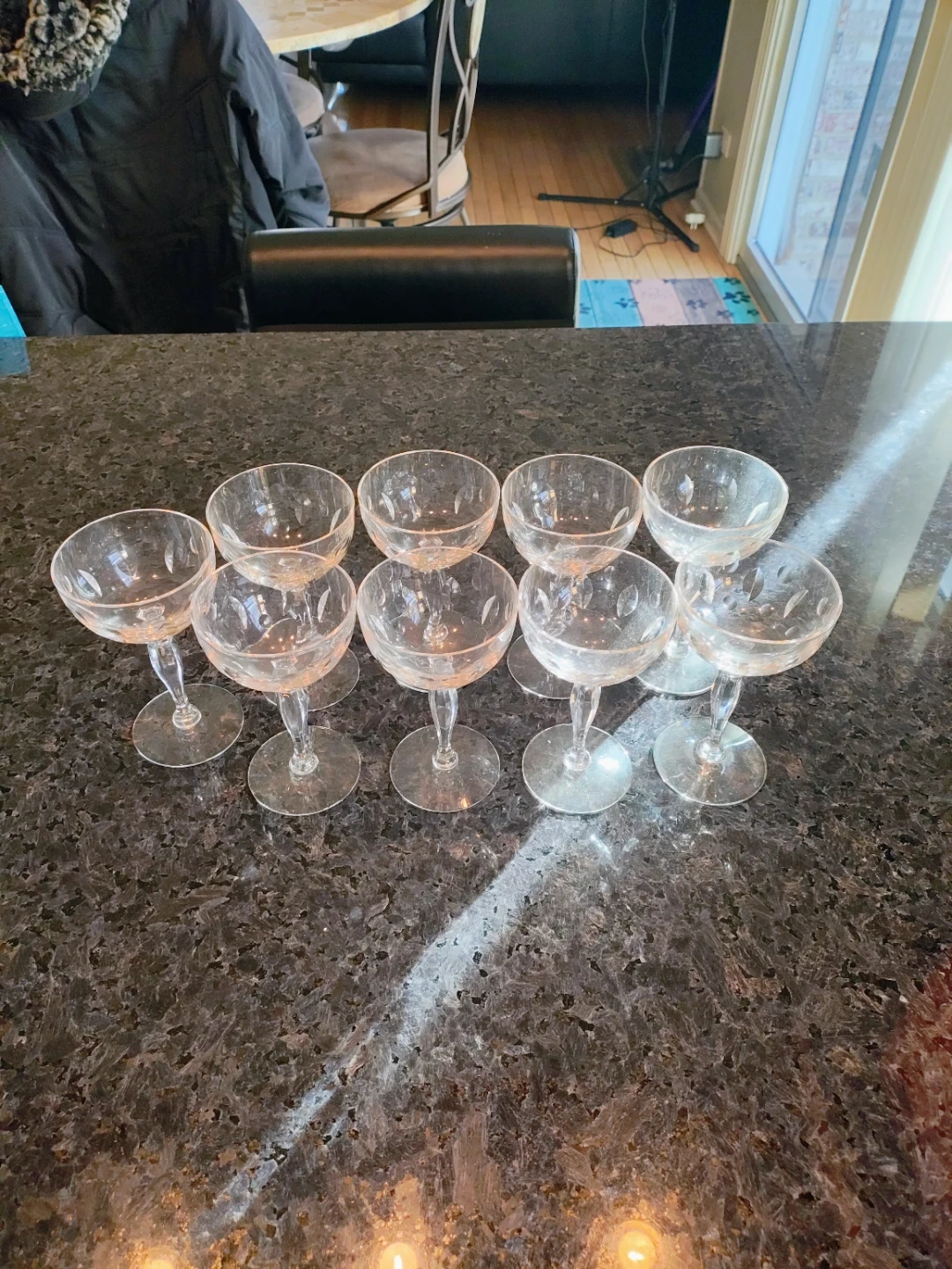 Selling a set of 9 champagne glasses. They're in great condition and ready to add a touch of elegance to your next celebration! Pick up only. Cash only.