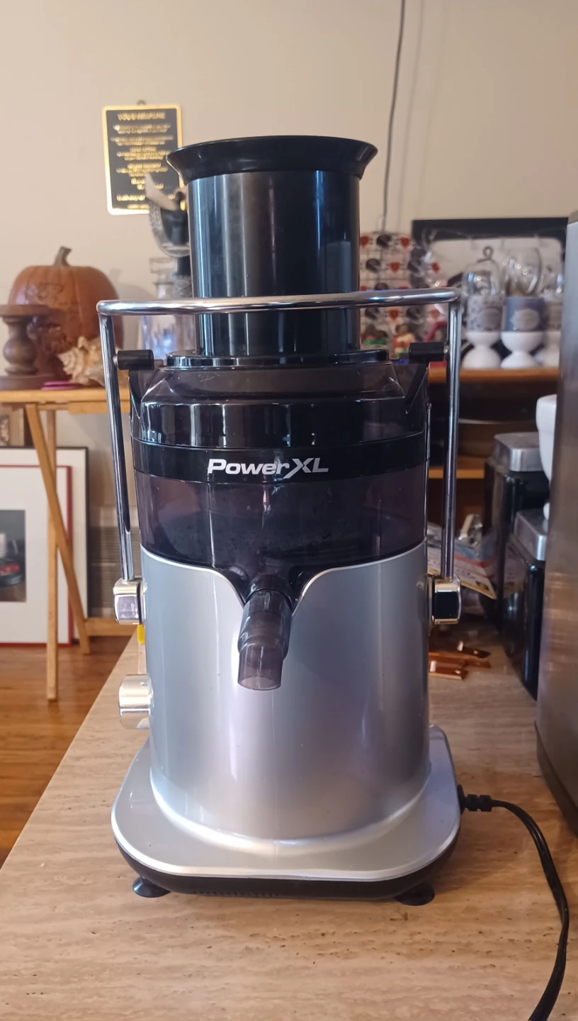 I'm selling a PowerXL juicer. It's in great condition and ready to make some healthy drinks! It's silver and black.