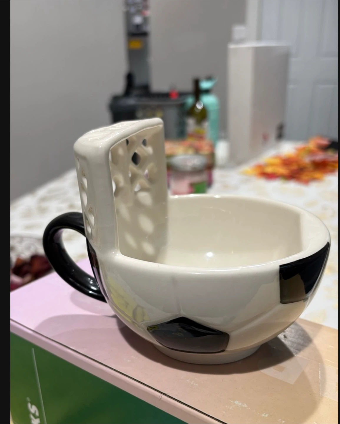 Selling a Starbucks soccer goal mug! It's in great condition and ready for a new home. It features a soccer ball design with a goal post attached to the side