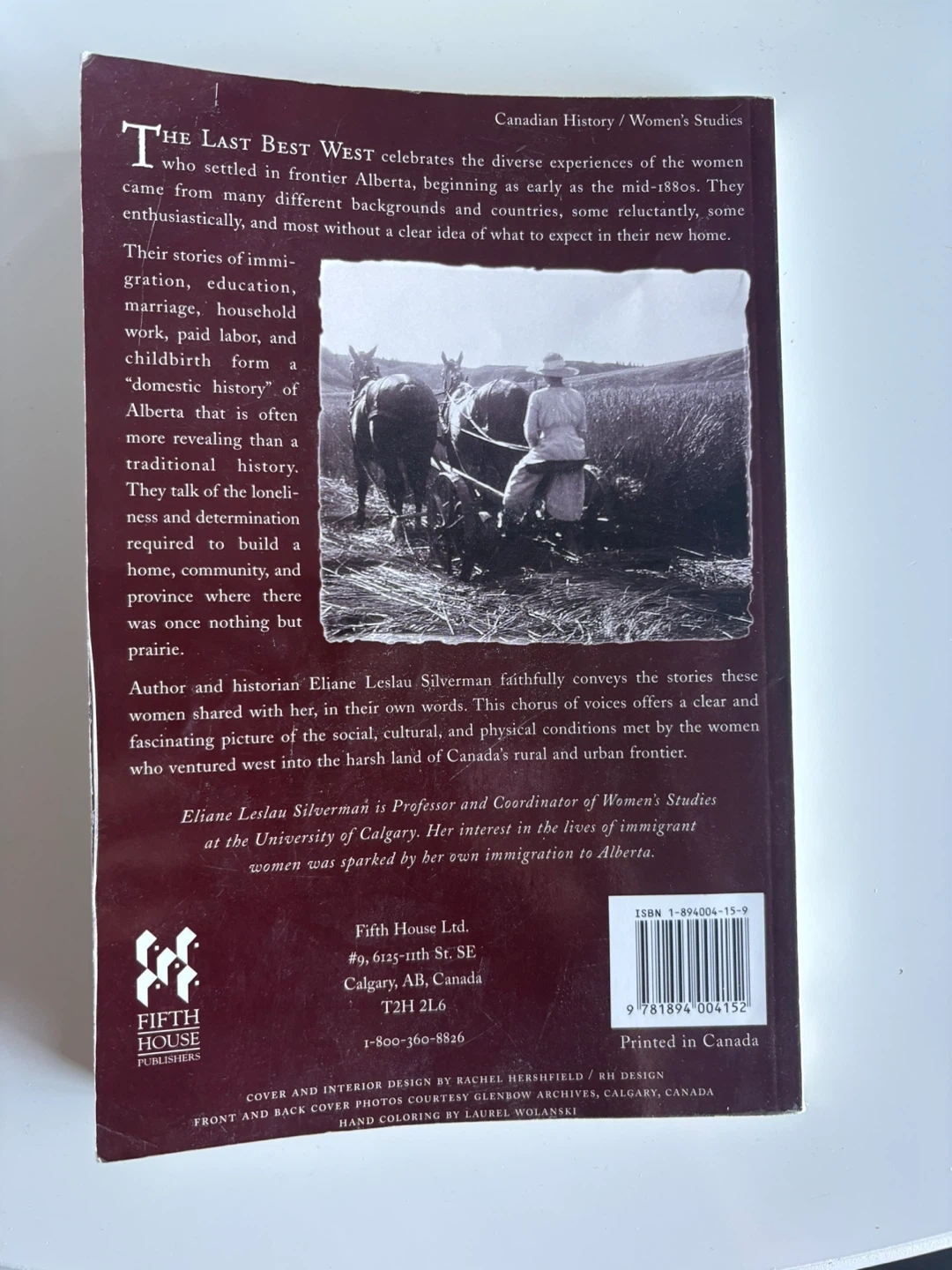Selling a copy of "The Last Best West: Women on the Alberta Frontier 1880-1930" by Eliane Leslau Silverman. It's a revised and updated edition that celebrates the diverse experiences of women who settled in frontier Alberta. A fascinating look at the social, cultural, and physical conditions met by the women who ventured west!