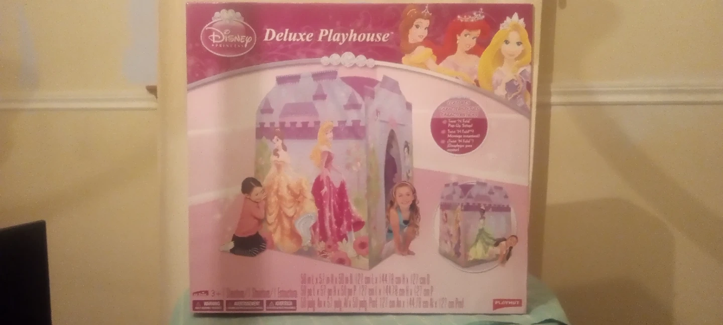 Selling a brand new Disney Princess Deluxe Playhouse! It's still in the box and ready for fun. Features a Twist 'N Fold pop-up setup, making it super easy to assemble and put away. Recommended for ages 3+