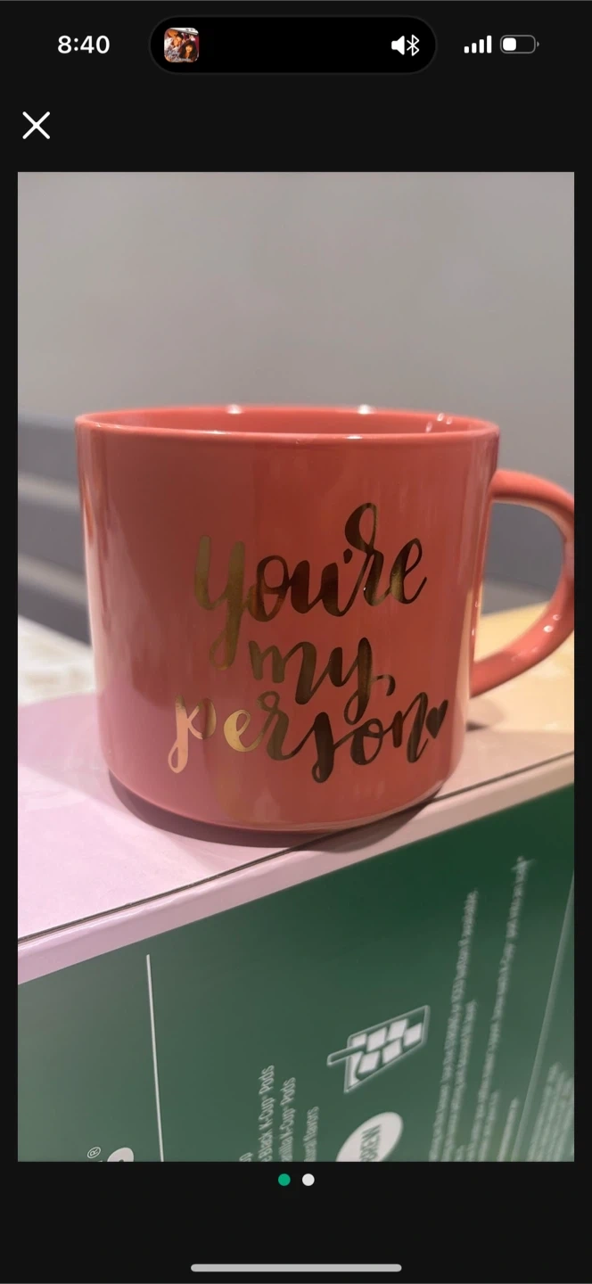 Buy & Sell"You're My Person" Mug"You're My Person" Mug$4Selling a cute mug with "You're My Person" written on it in gold lettering! It's a lovely coral color.EstadoLike newWHERE TO MEETCheck LocationView MapSELLERRosaSouth Side100 reviews0 chats·0 favorites·1 viewsSEND CHAT TO SELLERHi Rosa! I’m interested in your listing.Hi Rosa! I’m interested in your listing.Get the Karrot app to chatSign In to chat