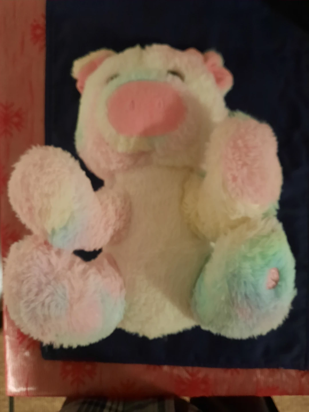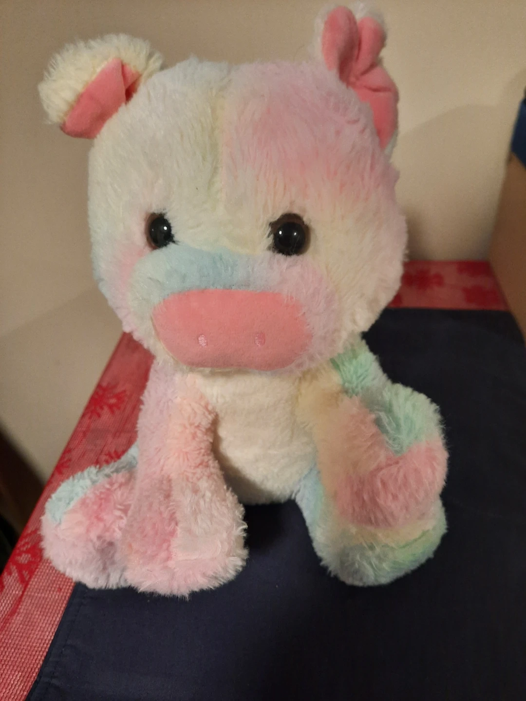 Selling a super cute and cuddly pastel-coloured plush piggy! It's in great shape and ready for a new home. Its soft, fluffy texture makes it perfect for snuggling. The pastel rainbow design is adorable!