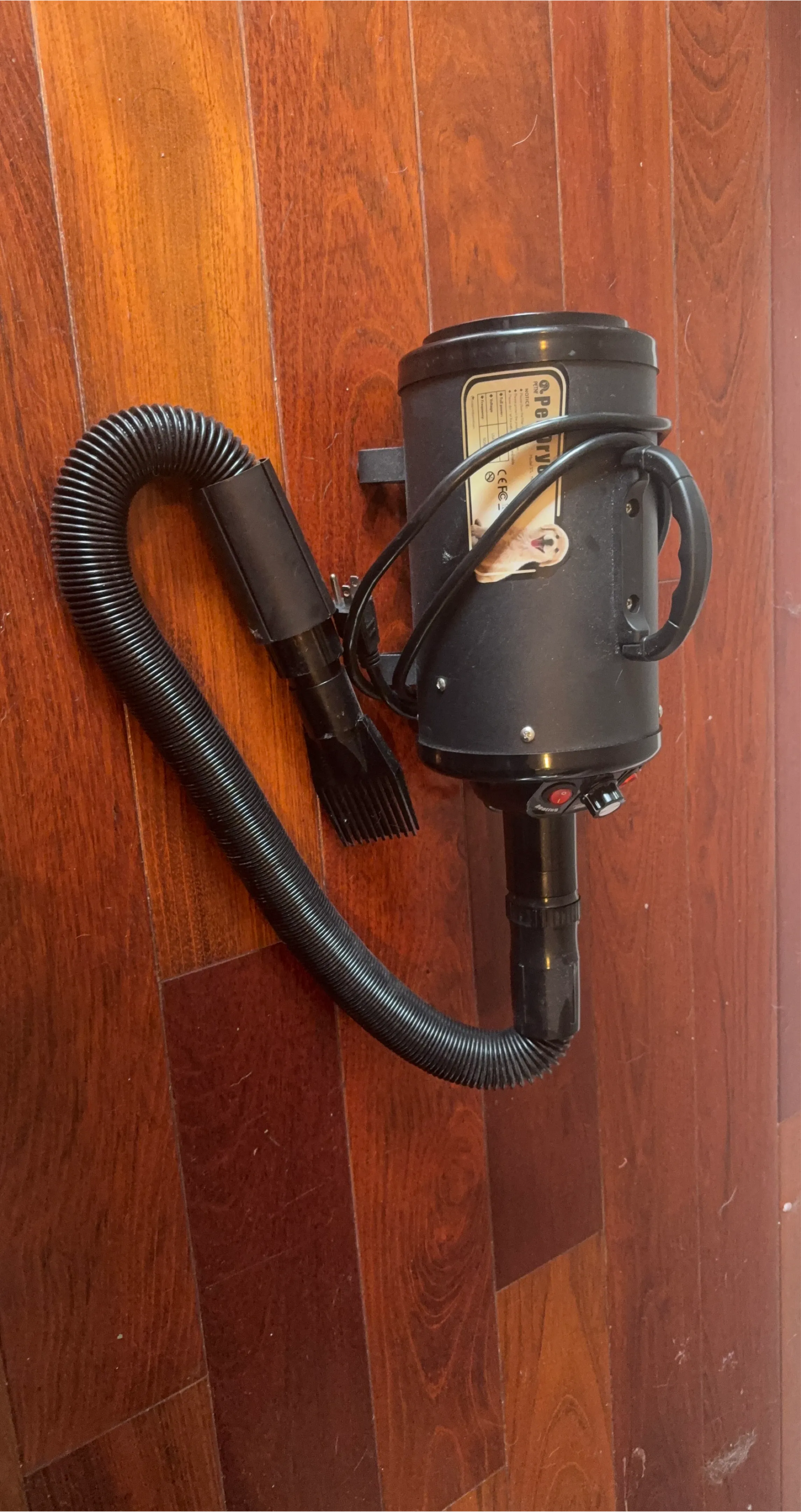 Selling a pet dryer in good condition! It's black and comes with a hose and nozzle attachment. Perfect for grooming your furry friend at home- never actually used.
