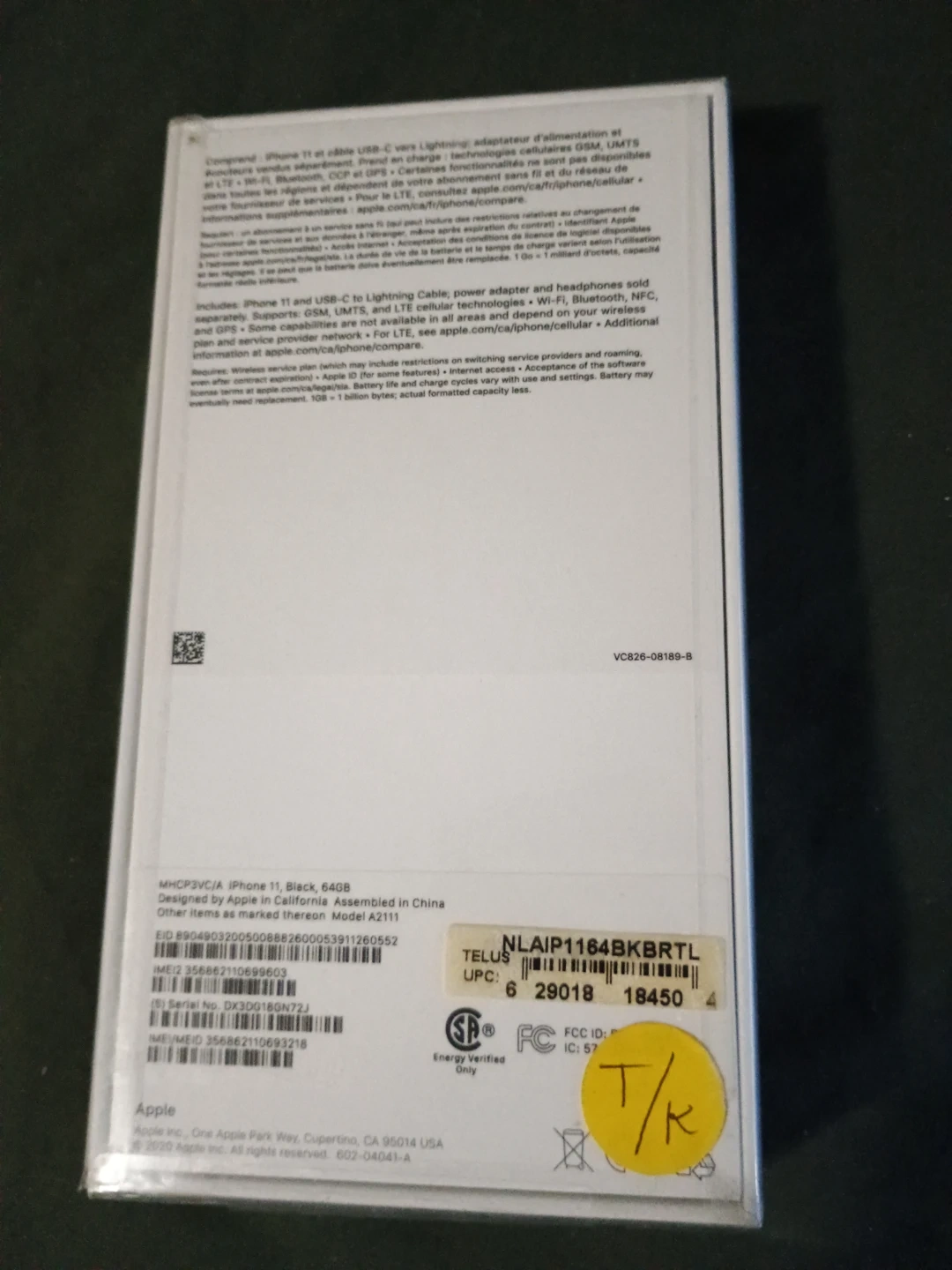 Selling an Apple iPhone 11 in black with 64GB of storage. It comes with the original sealed box and includes whatever accessories inside. Haven't opened the box, so don't know.