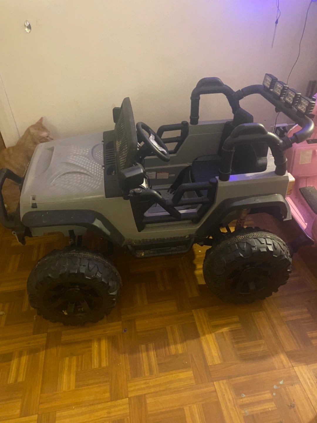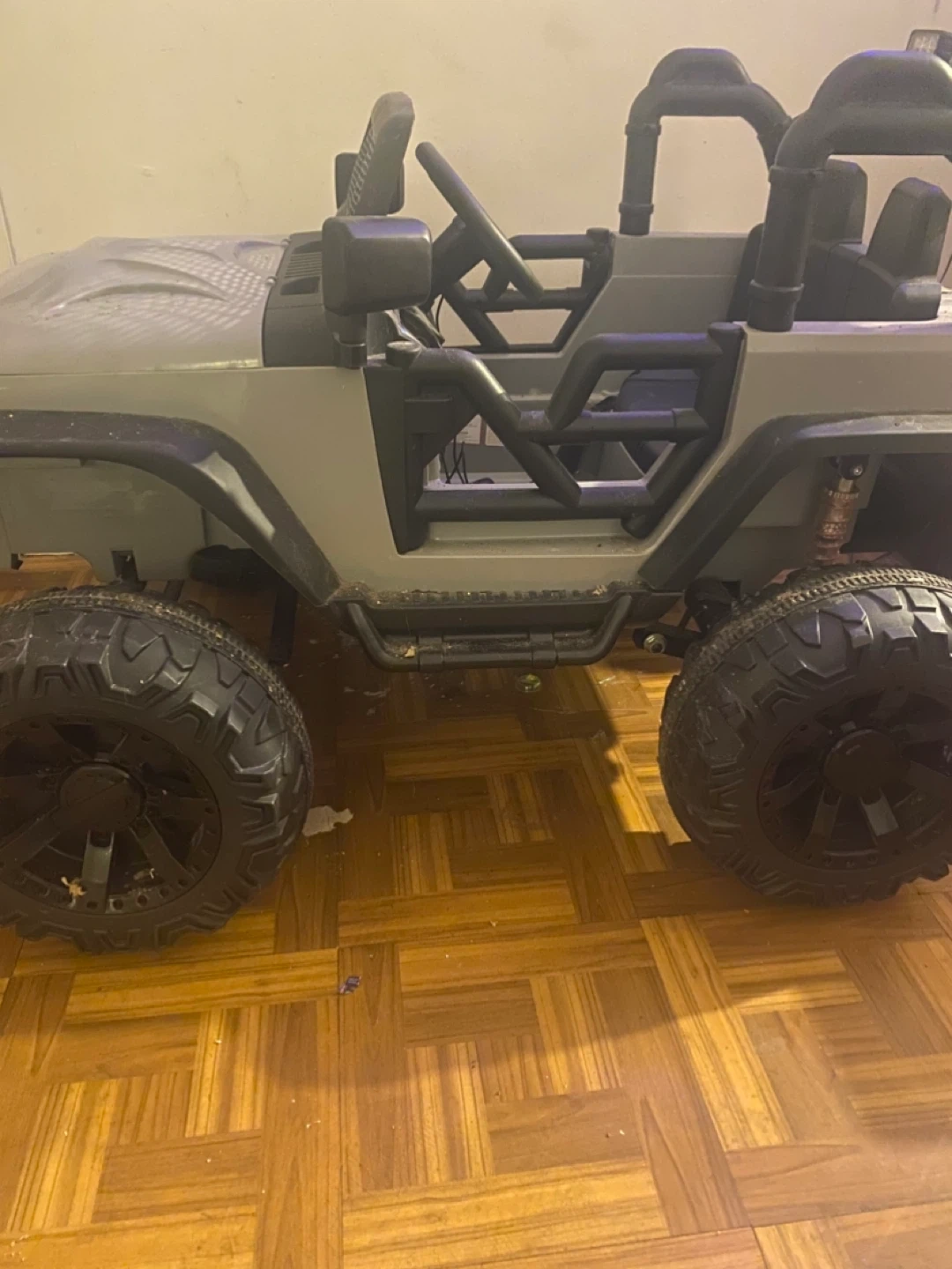 Selling a gray Kidszone ride-on car. It's a jeep style and ready for some fun adventures! In good condition has built in blue tooth radio and charger but not the remote also have a video of it working