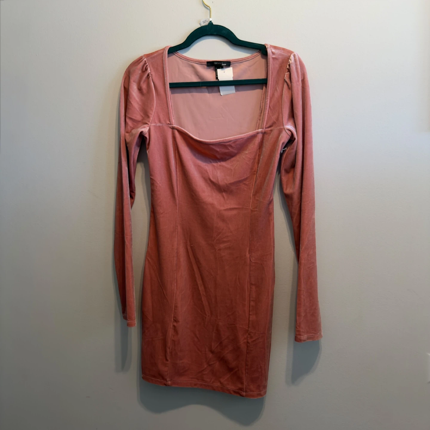 Selling a cute Forever 21 dress! It's a soft pink velvet material and a size small. Perfect for a night out!