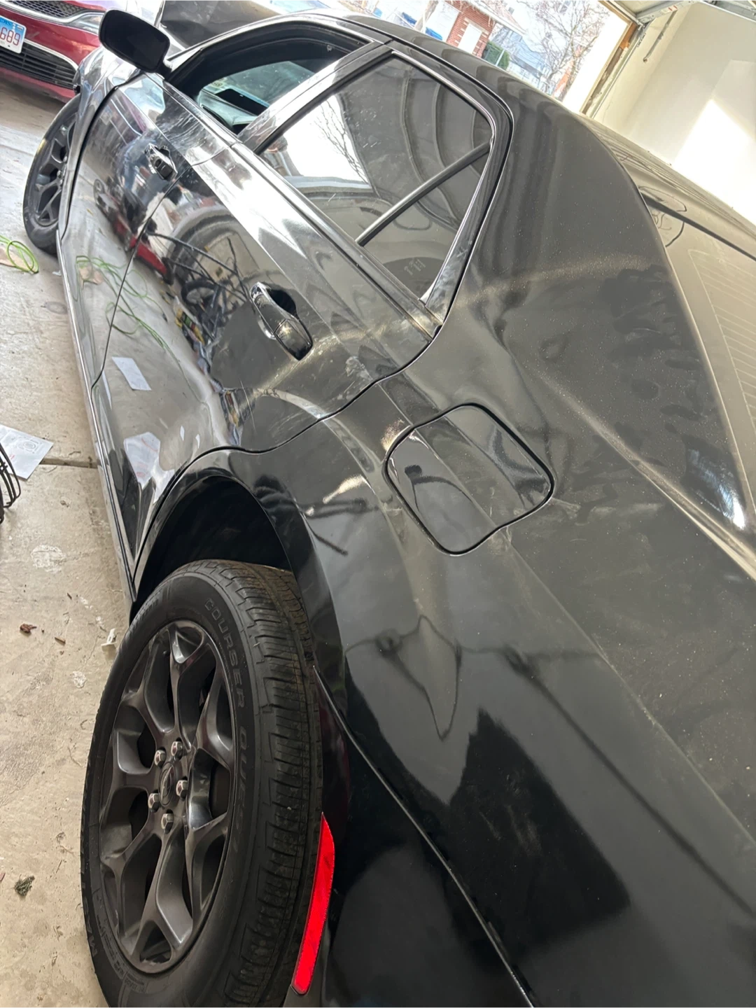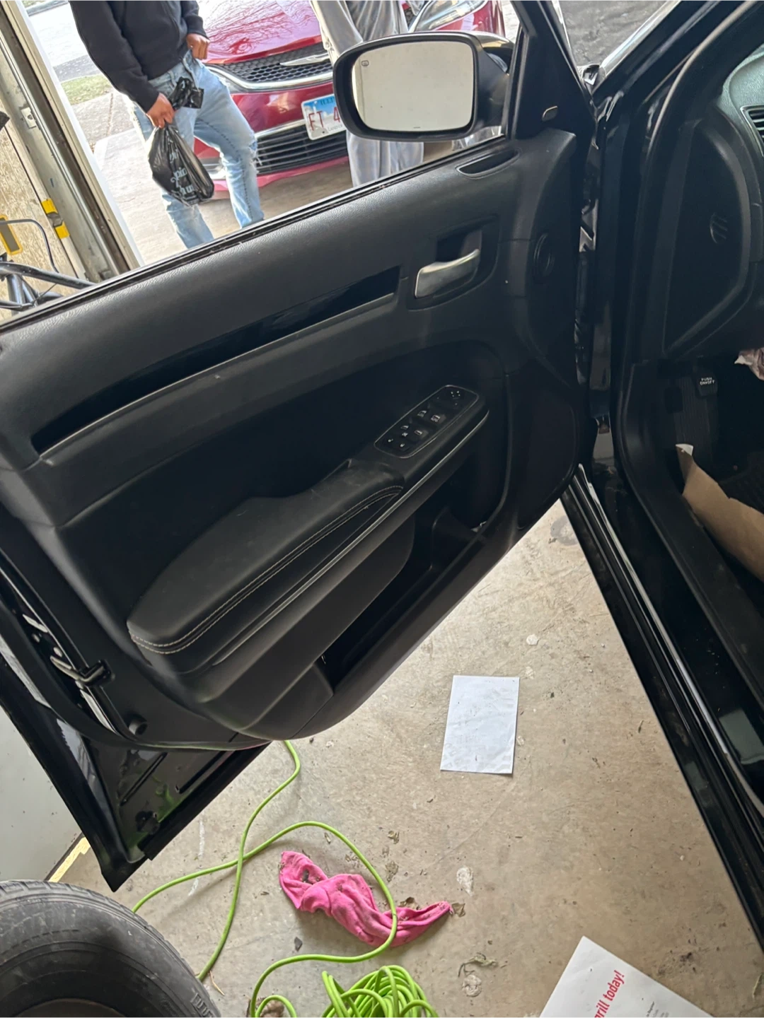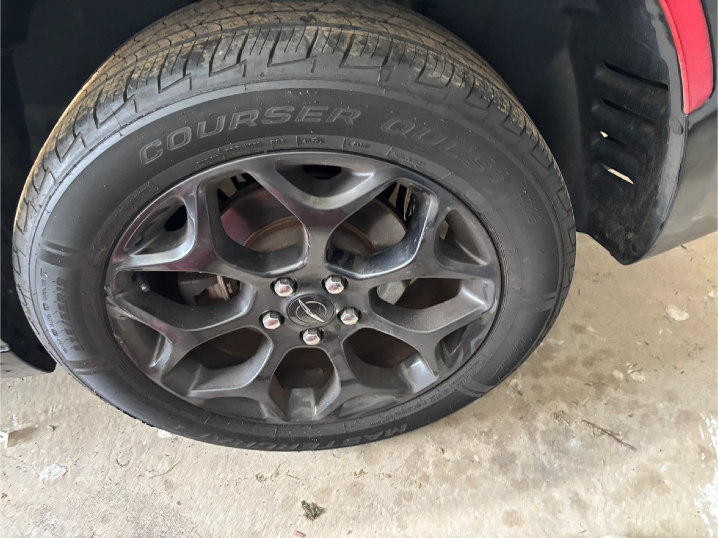 Selling a damaged 2019 Chrysler 300S. The car has deployed airbags and some body damage. It could be a good source of parts or a repair project for someone. The seats are black leather with an 'S' logo. The tires are Courser Quest.