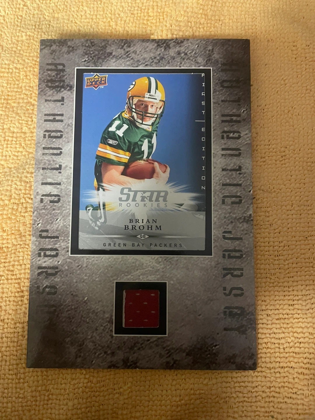 Selling a collection of Upper Deck Authentic Jersey cards. These cards feature pieces of game-worn jerseys from Tony Gwynn, Tracy McGrady, and Brian Brohm. Great for sports memorabilia collectors!