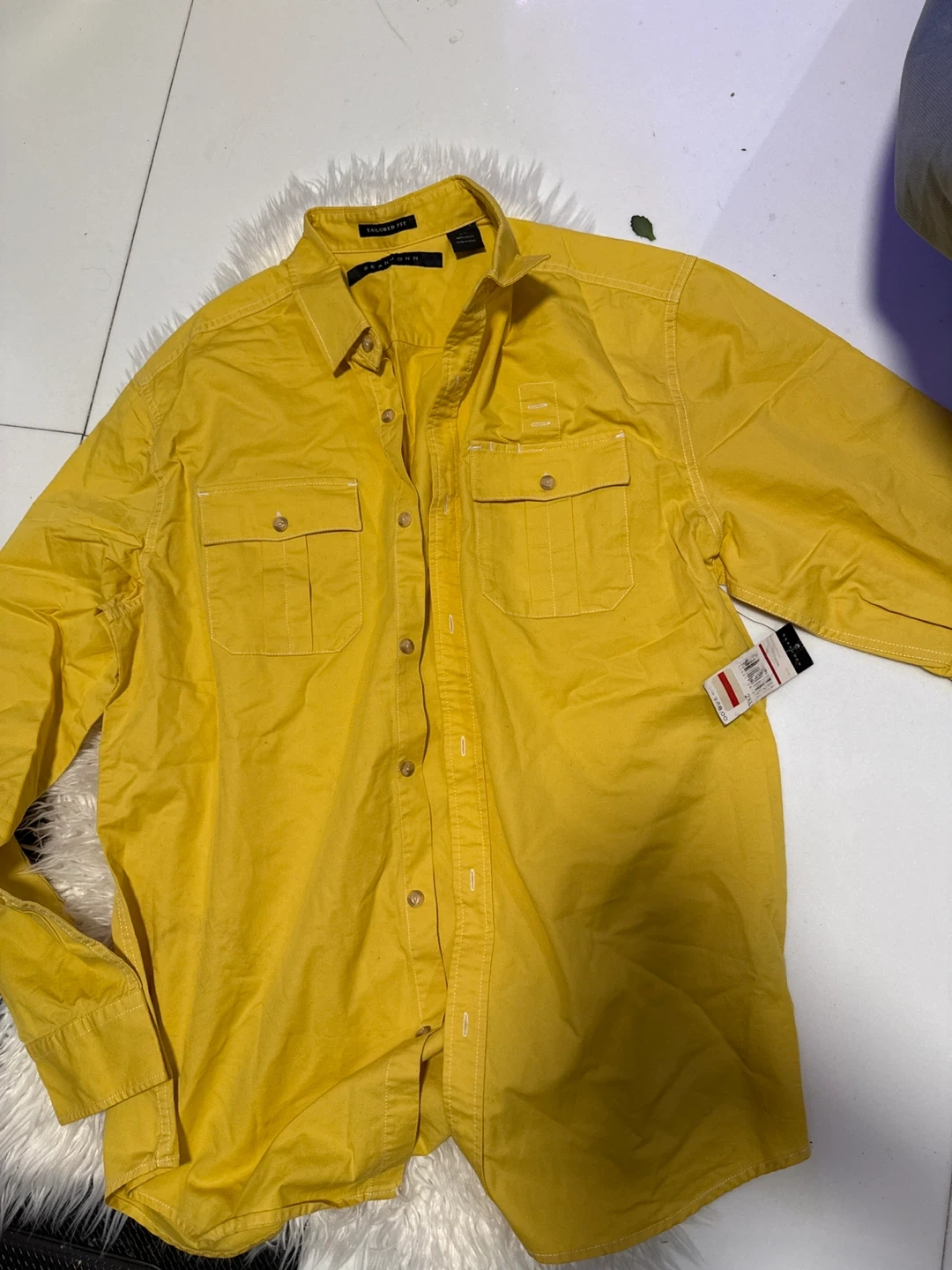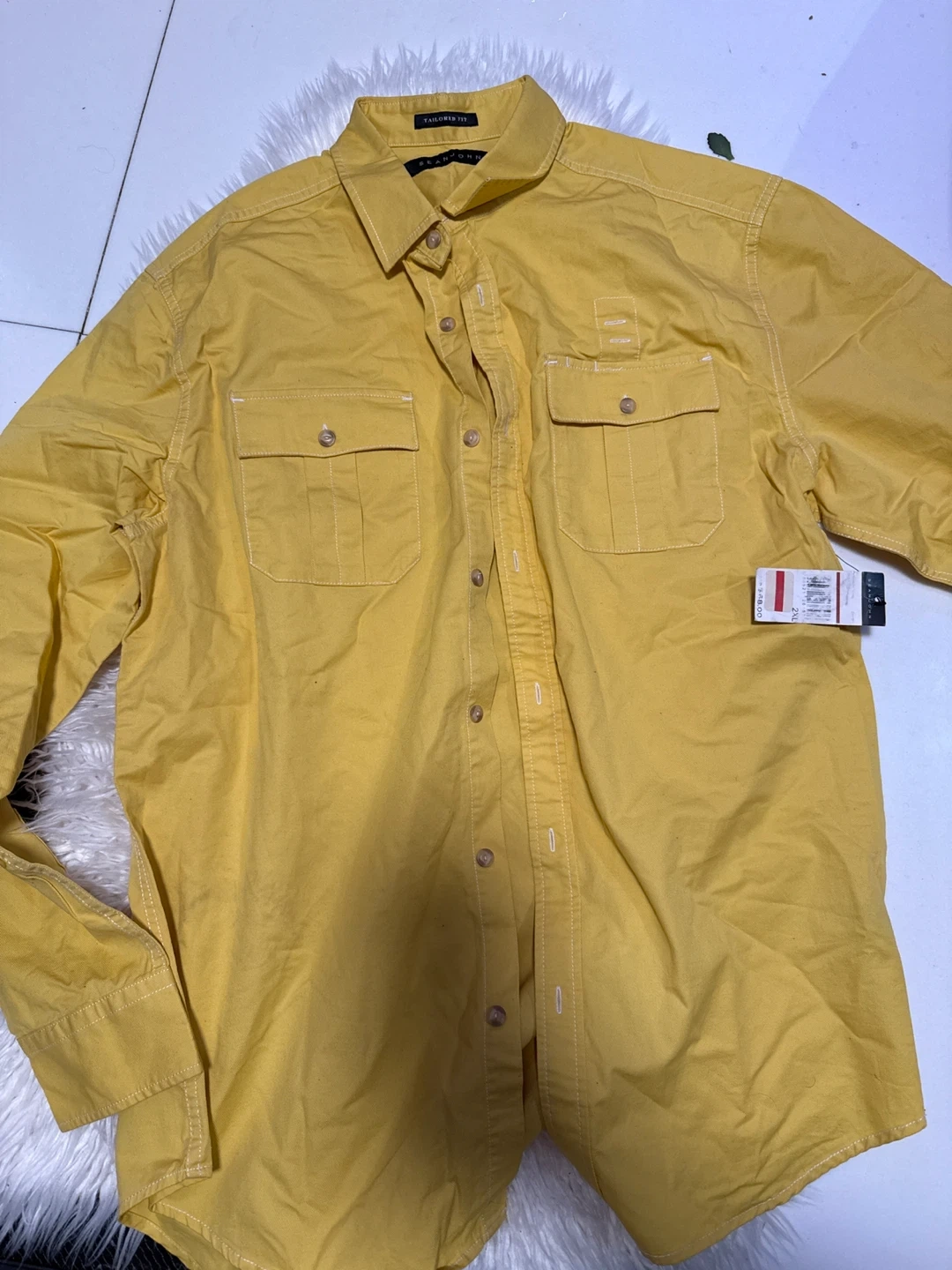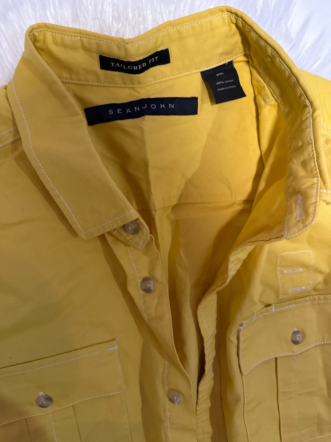 Selling a Sean John tailored fit shirt in a vibrant yellow color! It's a size XXL and made of 100% cotton. Perfect for adding a pop of color to your wardrobe