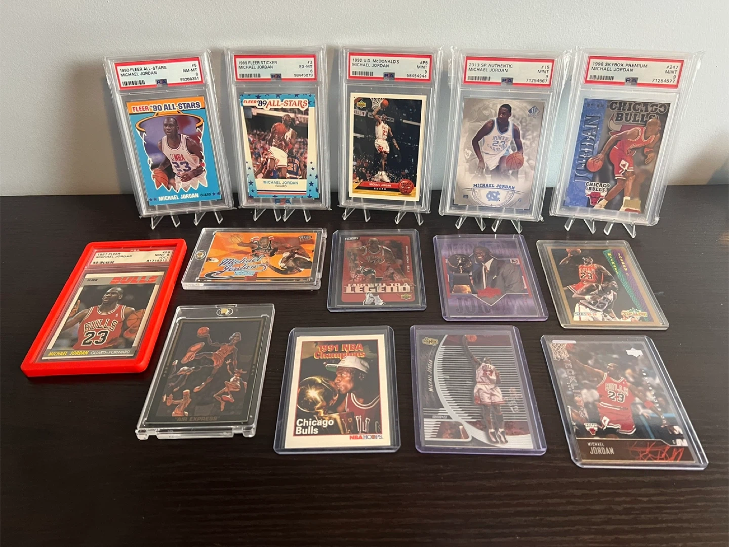 Selling a collection of Michael Jordan and Stephen Curry basketball cards.