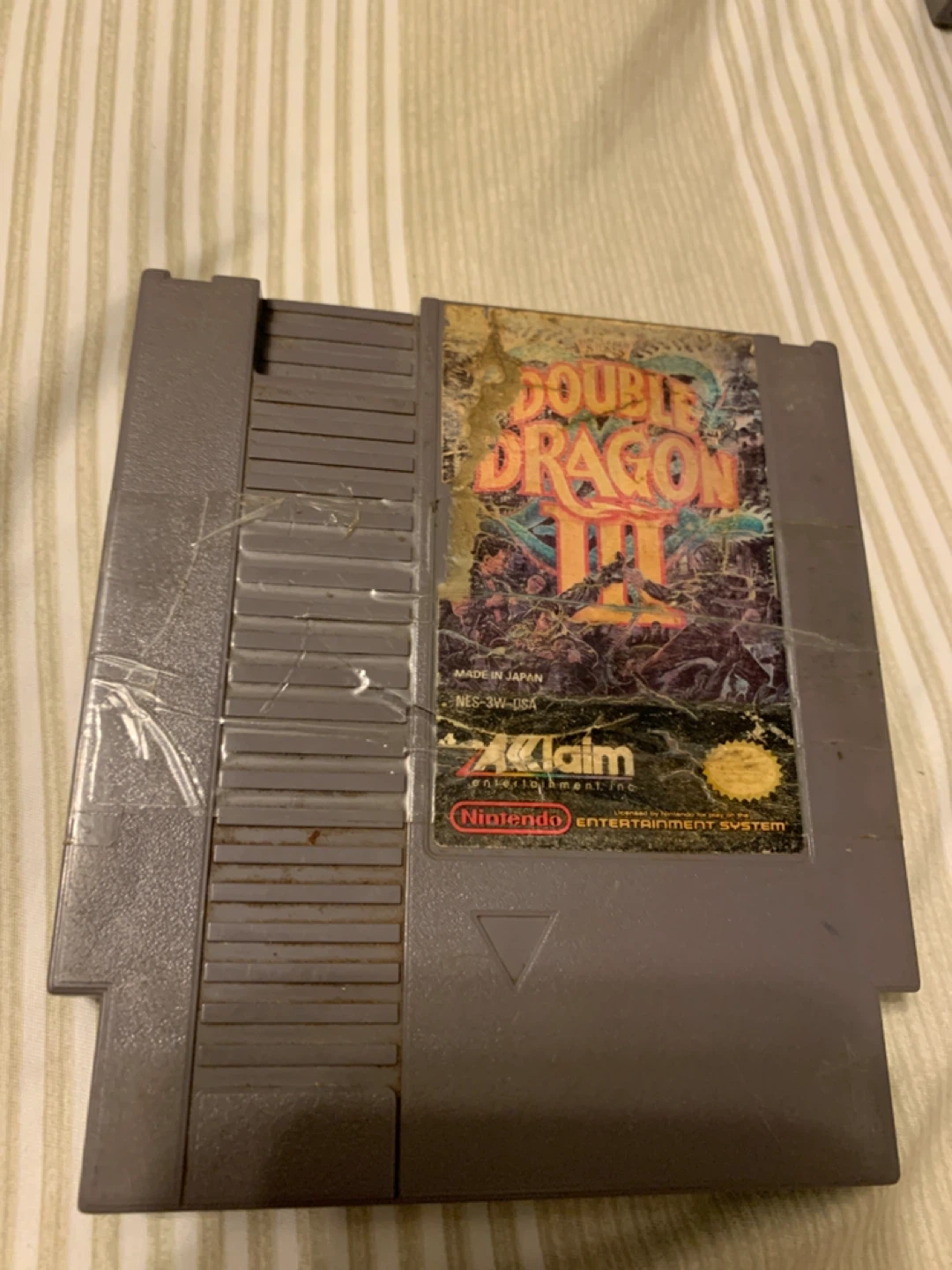 Selling a used Double Dragon III game cartridge for the original Nintendo Entertainment System (NES). It's seen better days, but it could be a fun retro game for someone!