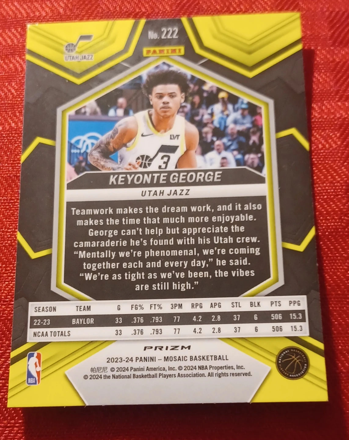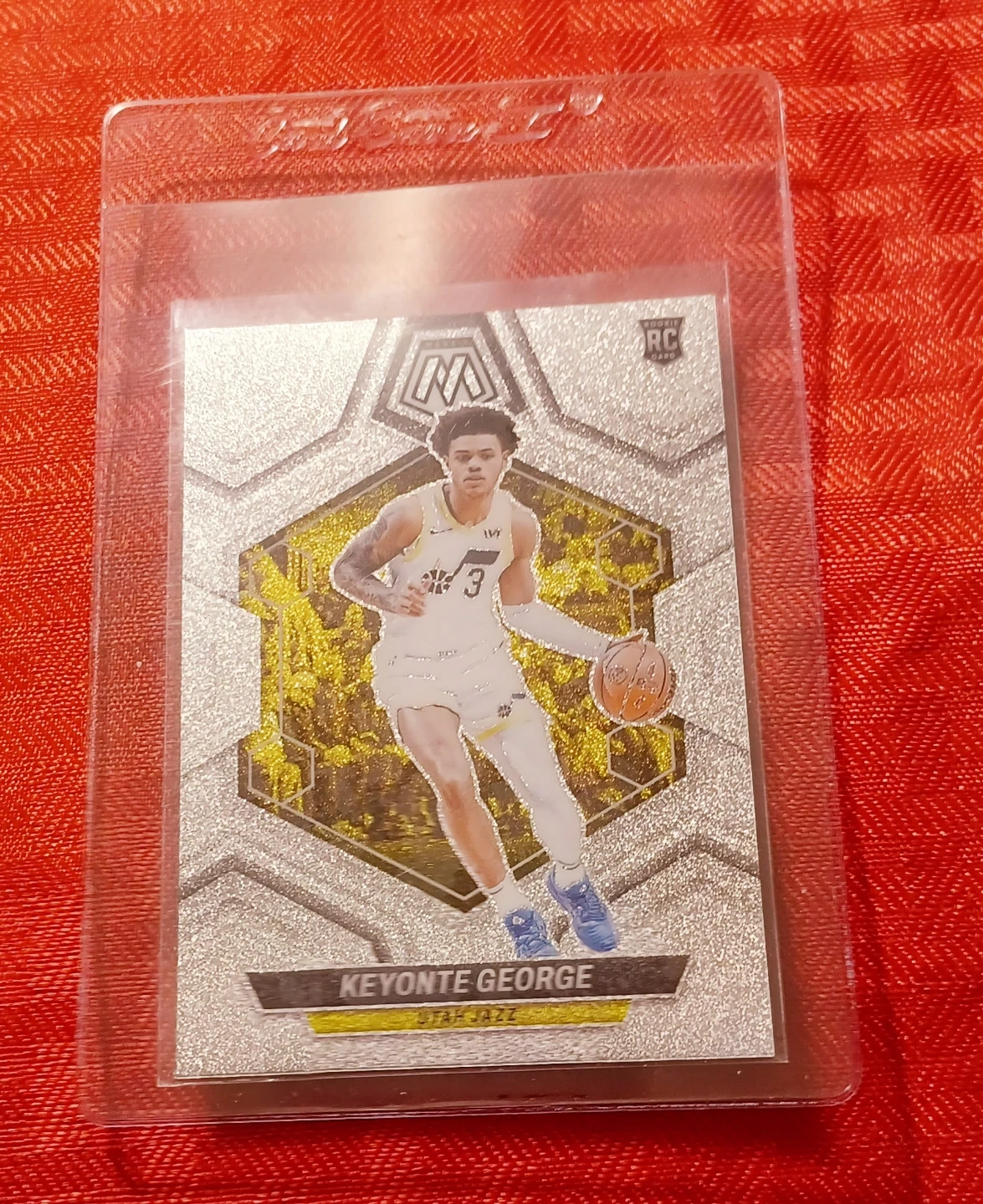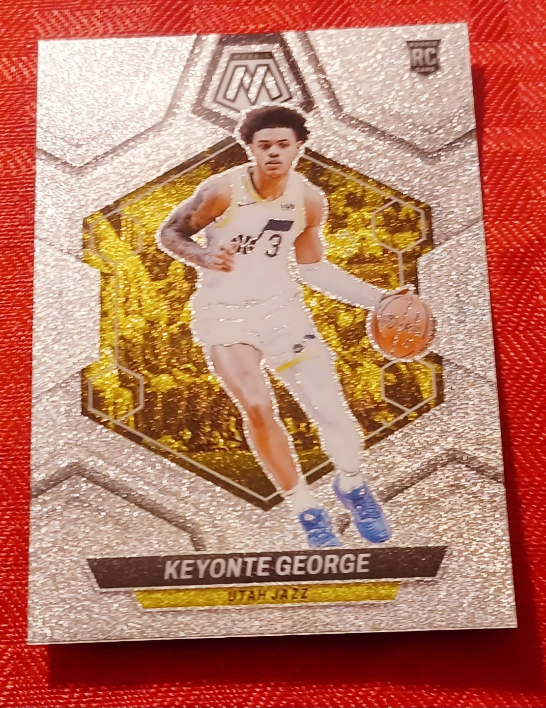 Selling a Keyonte George Utah Jazz ssp basketball card from the 2023-24 Panini Mosaic collection. This card features a cool glitter design and would be a great addition to any basketball card collection. Case Hit.