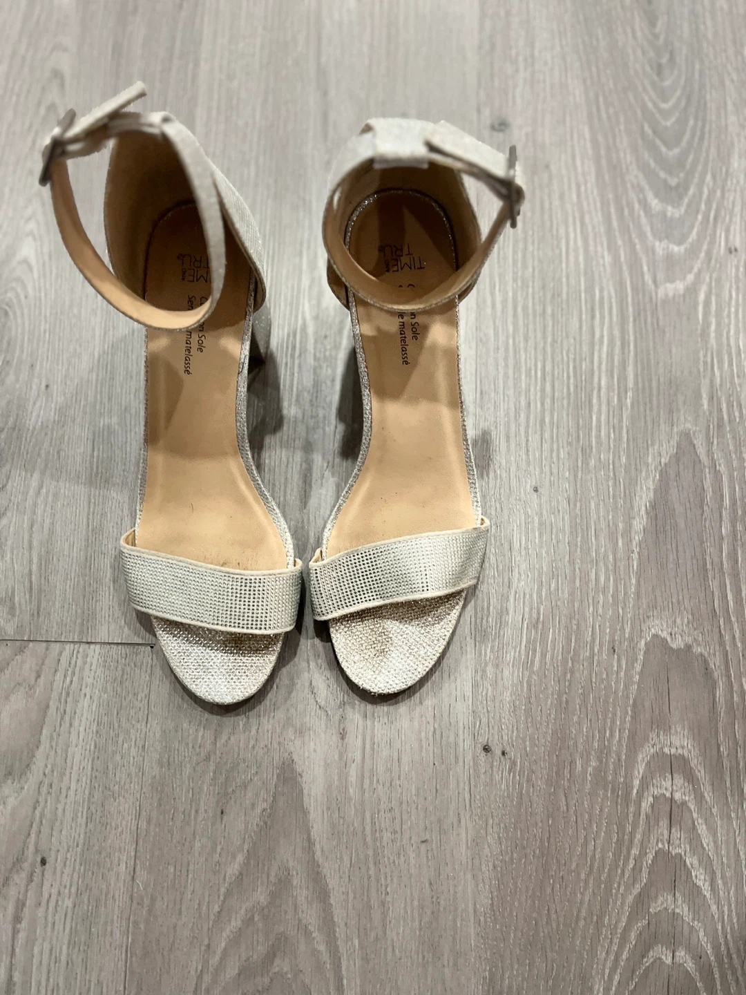 Selling a pair of Time and Tru silver heels in size 10. They're in great condition and would be perfect for a night out or special occasion!