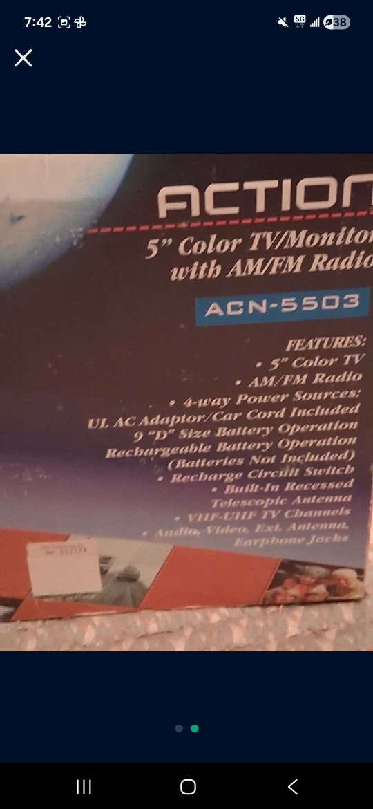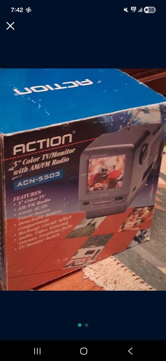 Selling an Action 5" Color TV/Monitor with AM/FM Radio, model ACN-5503.