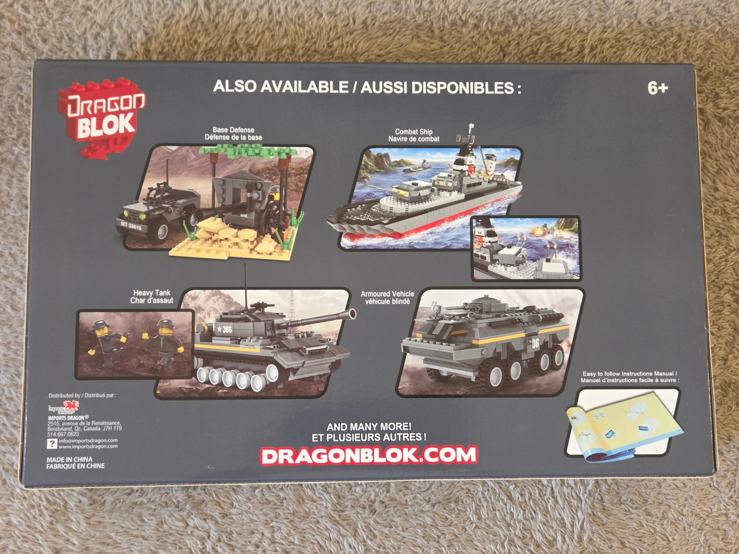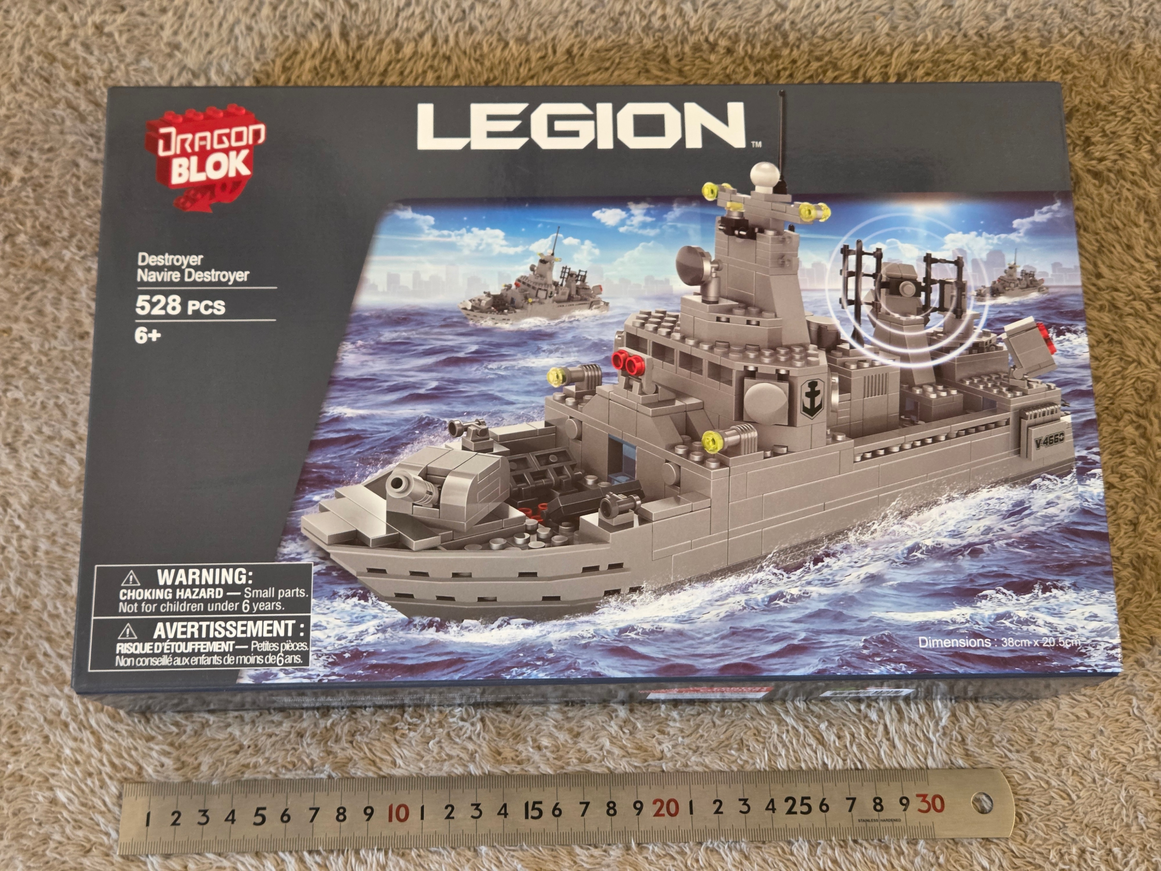 Brand new, sealed Dragon Blok Legion “Destroyer” building set – 528 pieces. Canadian brand (distributed by Imports Dragon, QC). Age 6+. Clear, step-by-step instruction manual included.