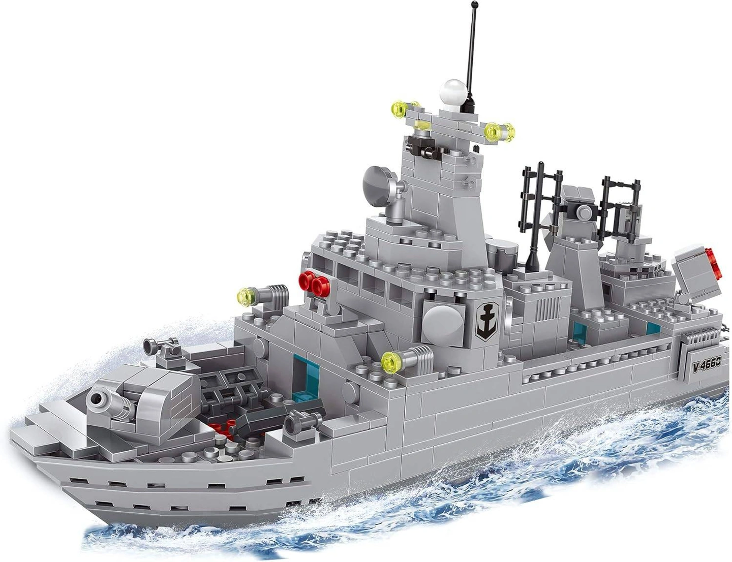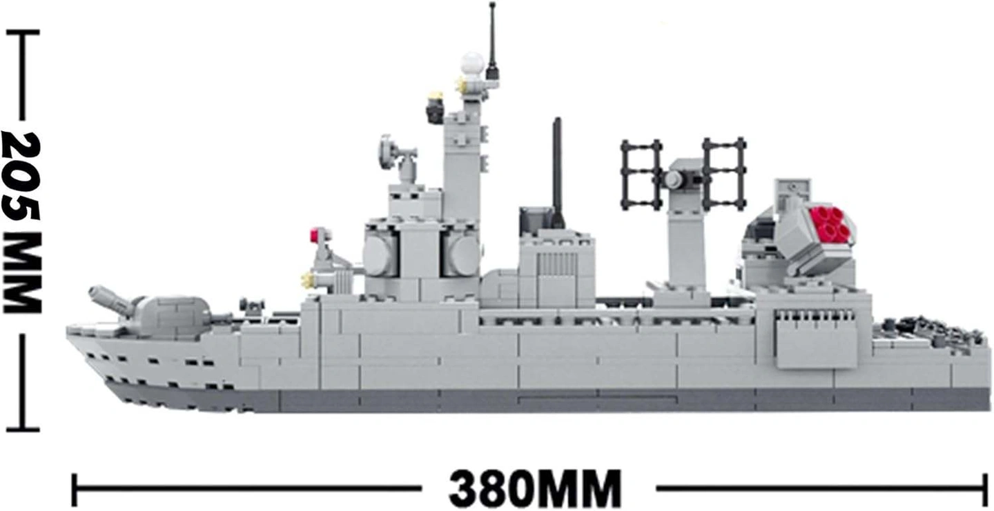 – 528 pcs military-style destroyer with radar, deck gun and launcher details