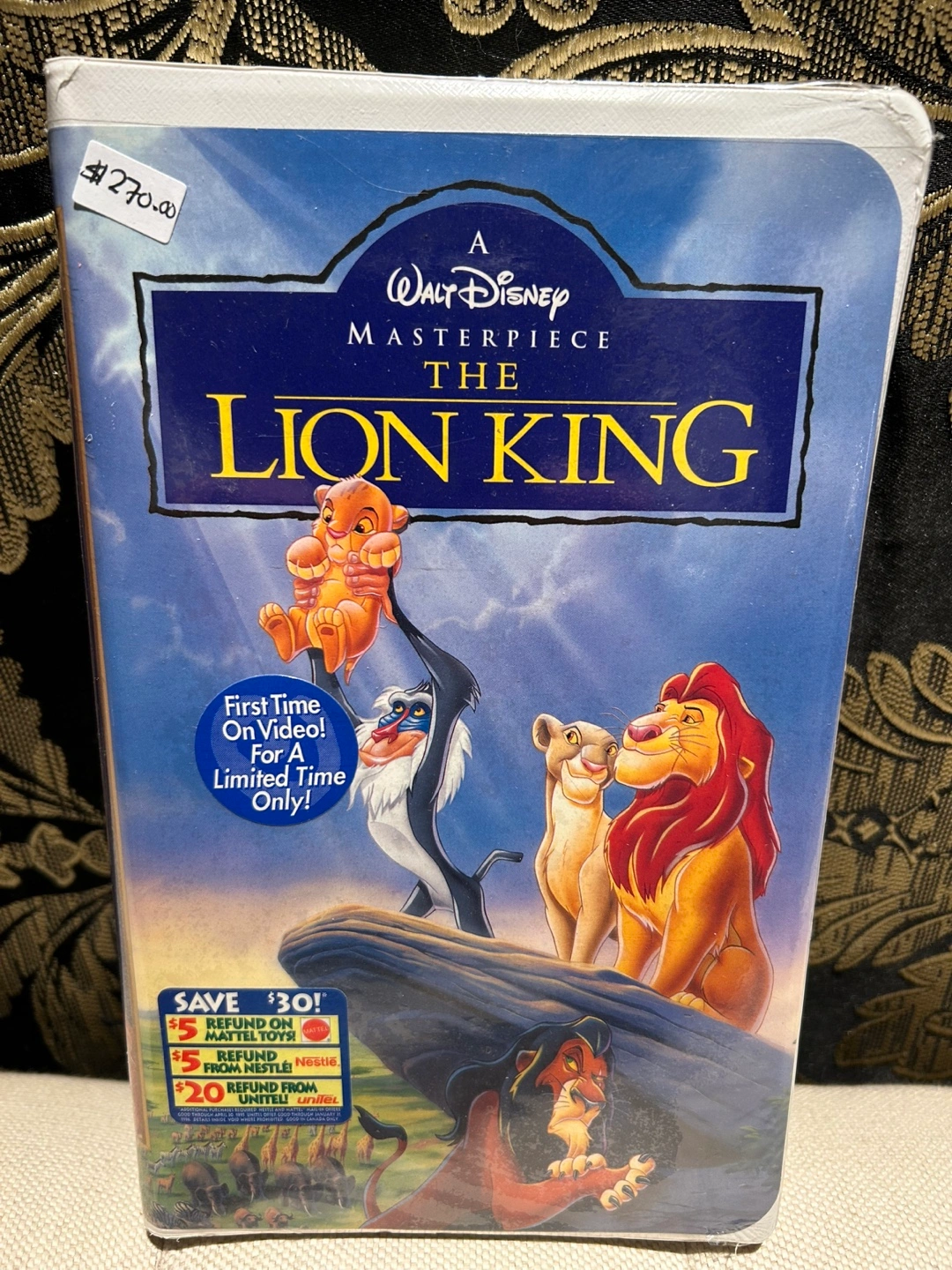 Selling a Walt Disney Masterpiece, The Lion King VHS tape! A classic for any collection. It's in great shape and ready to be enjoyed by a new generation of fans. Includes the original packaging. Sealed and looks brand new