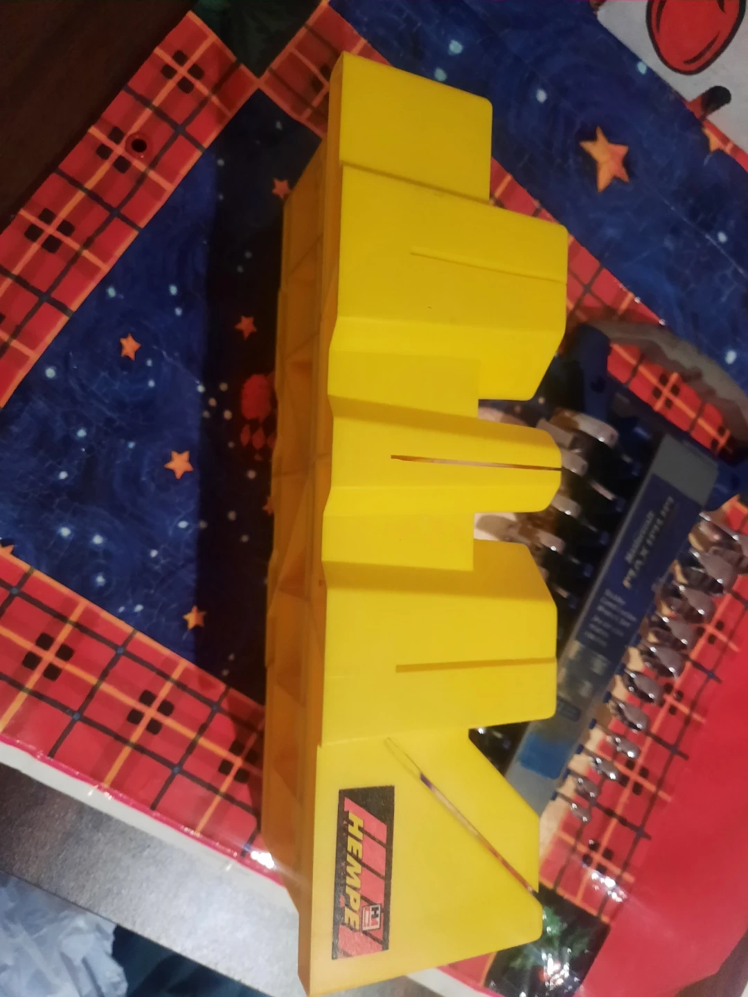 Selling a yellow miter box, proudly made in the USA! It's perfect for cutting angles and making precise woodworking projects.