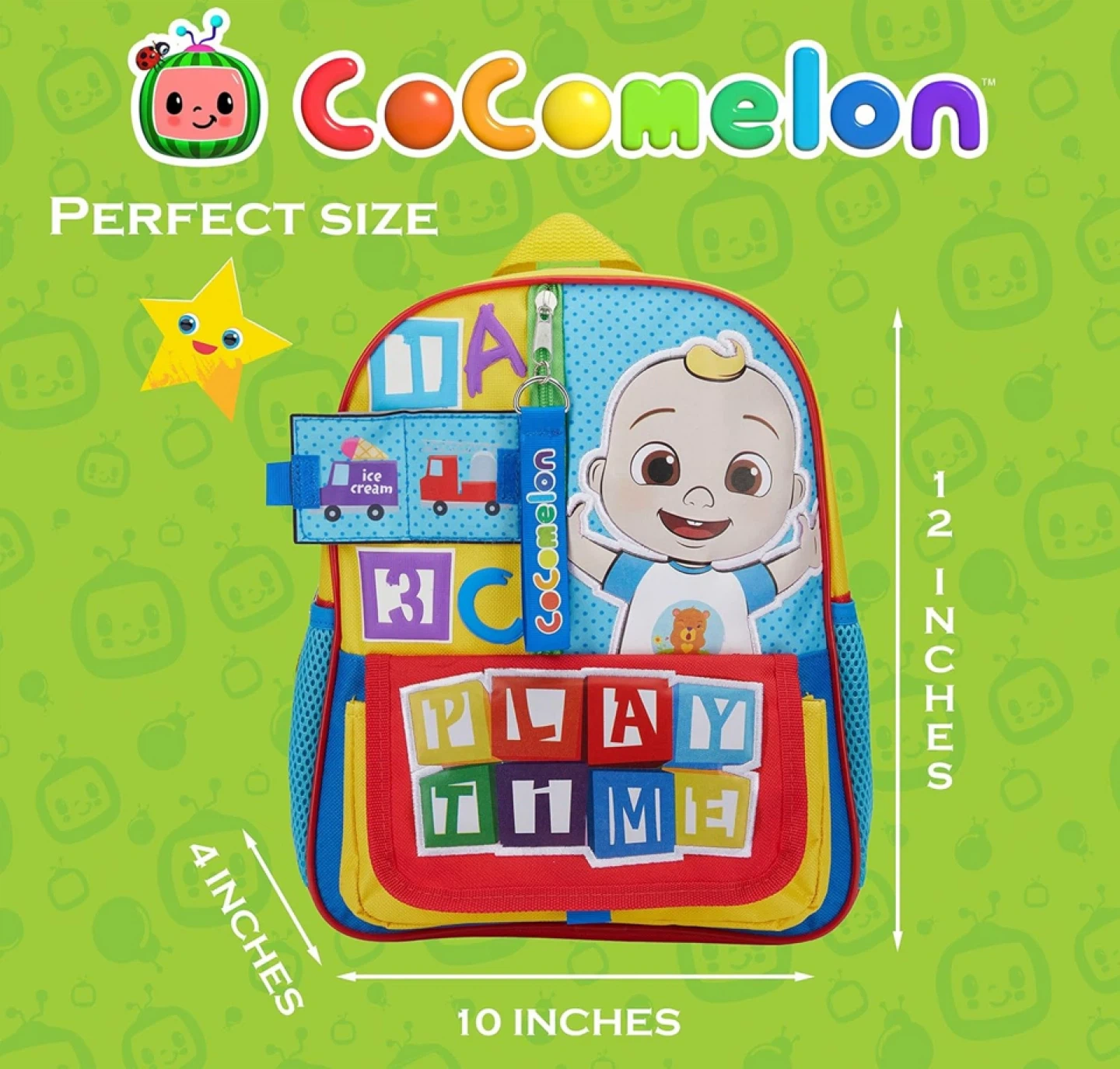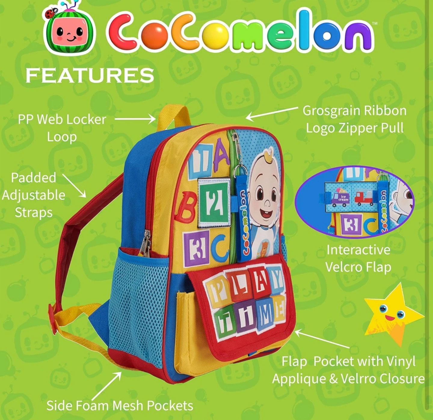 This CoComelon backpack is in great condition and ready for a new adventure! It's the perfect size for little ones, measuring 12 inches tall and 10 inches wide.