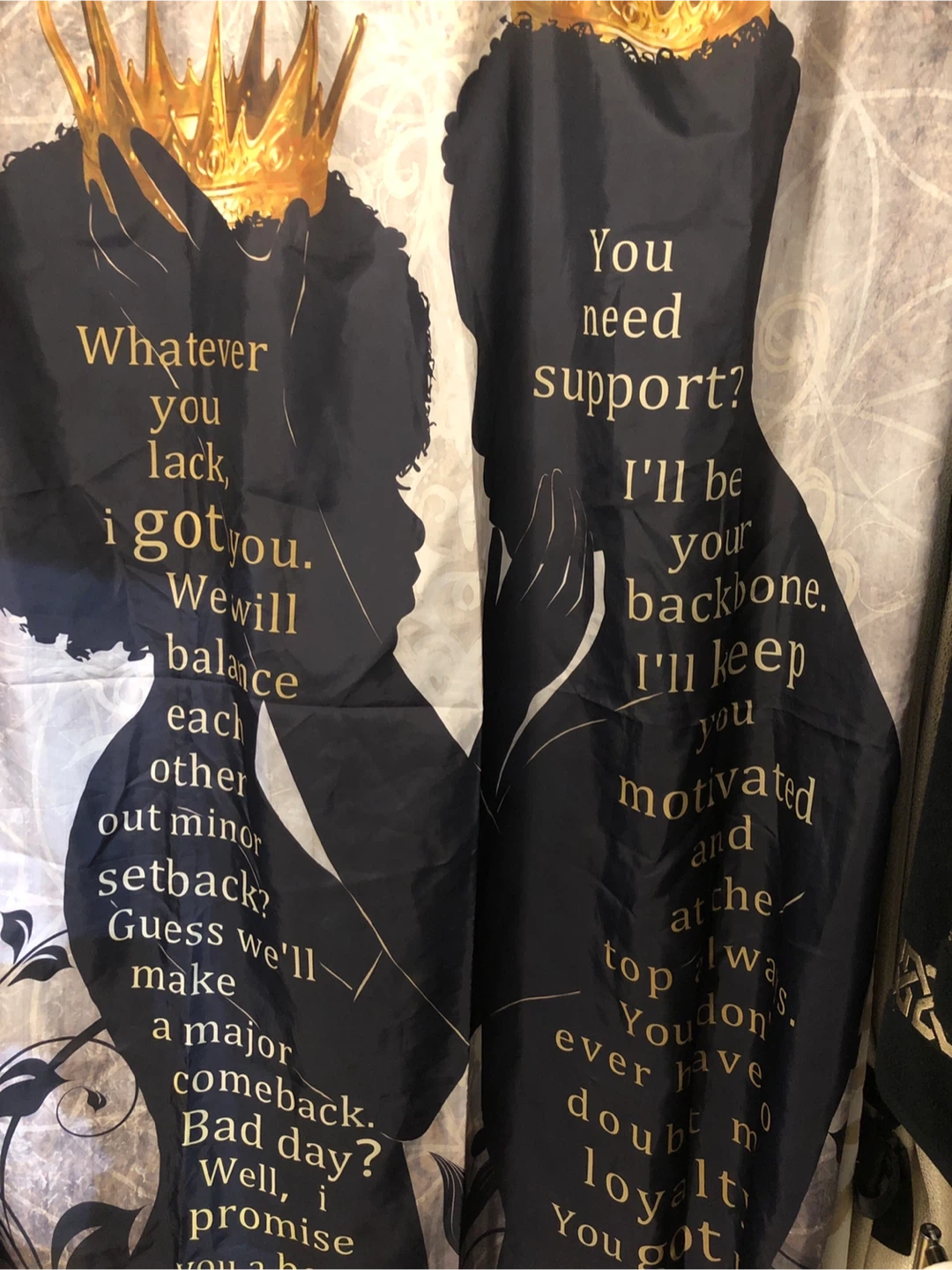 If the ad is up the set is available, you don't have to ask. This shower curtain features inspirational quotes and a unique design. It's perfect for adding a touch of motivation to your bathroom decor. The black and gold color scheme is both stylish and elegant. Give your bathroom a fresh new look with this eye-catching shower curtain!