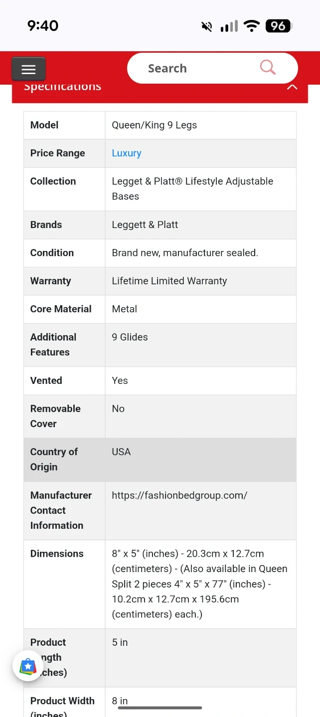 Legget&Platt Prestige adjustable Bed Frame - unopened box, NEW