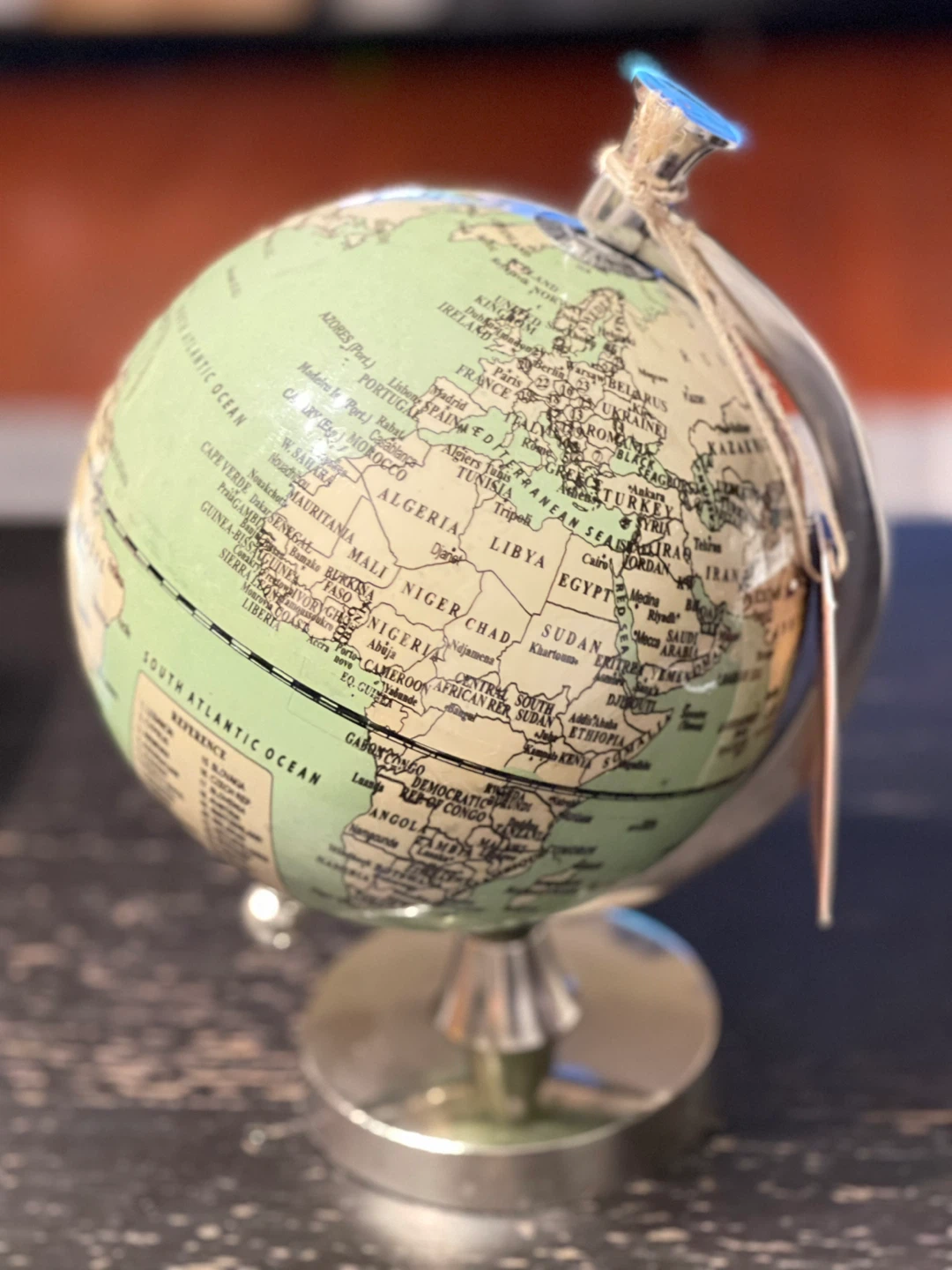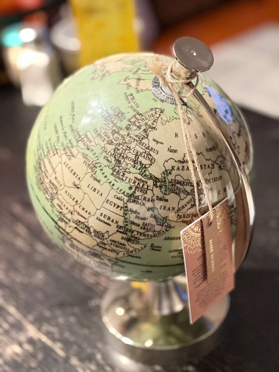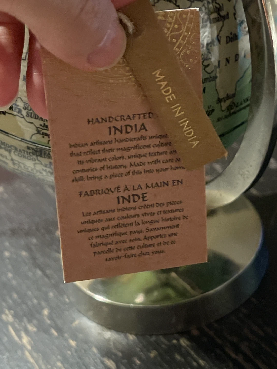 This handcrafted globe from India is a unique piece that reflects its magnificent culture. The vibrant colours and unique texture add a touch of history to your home. Made with care and skill, it's a beautiful addition to any space