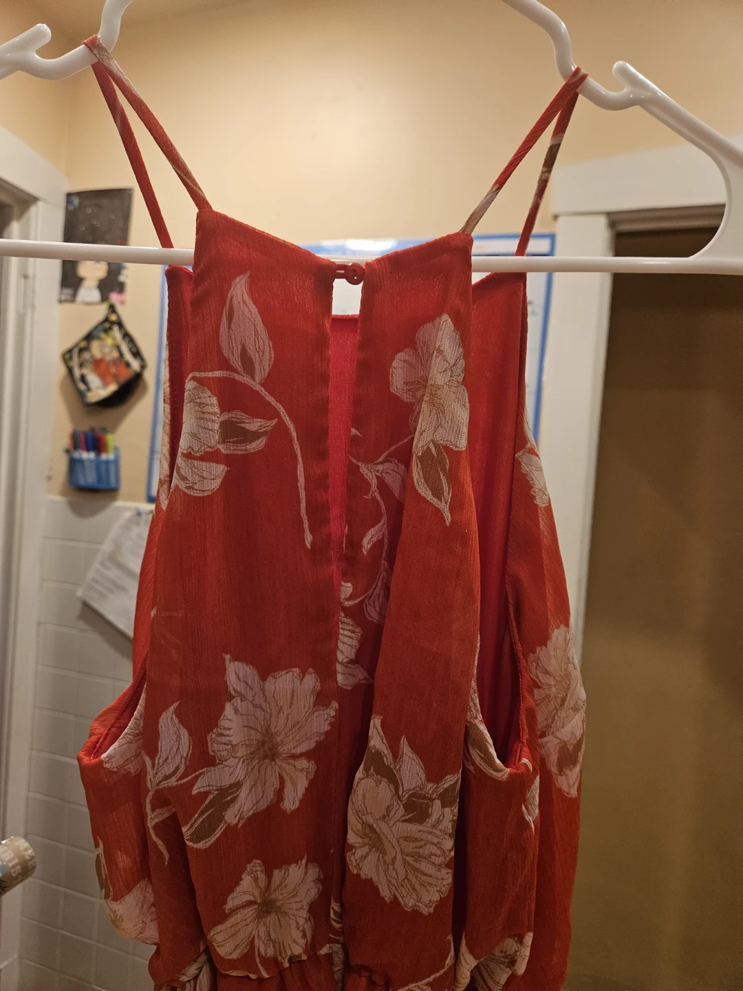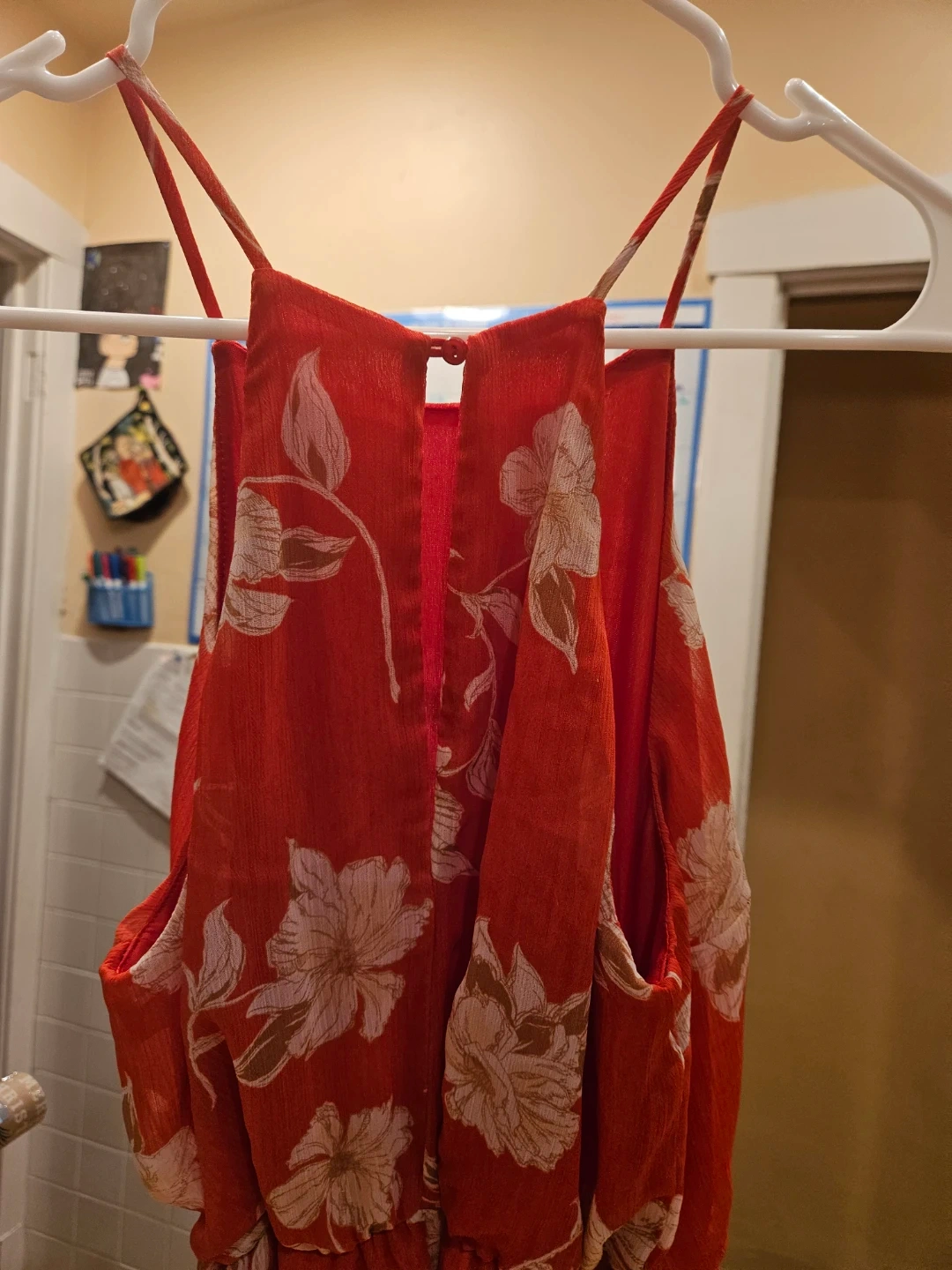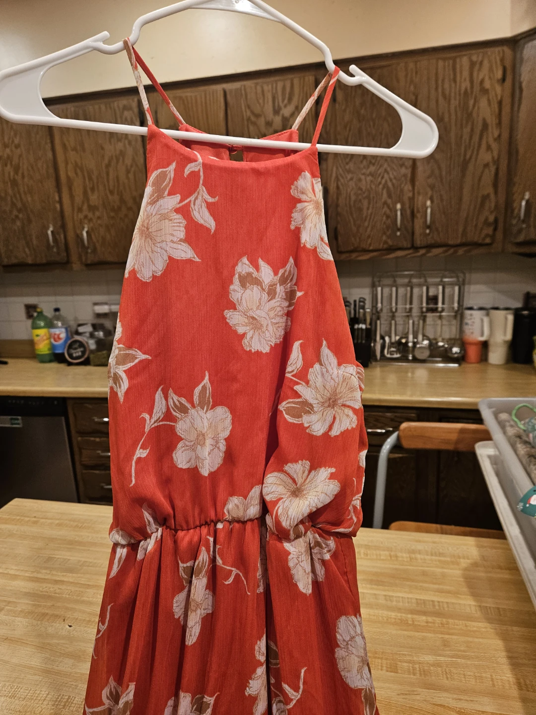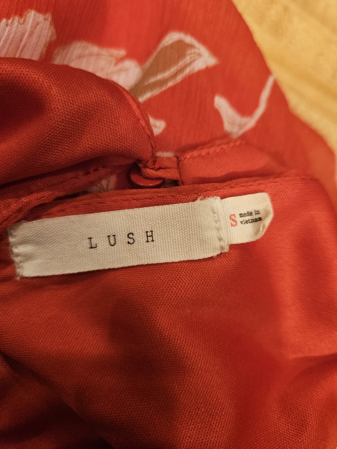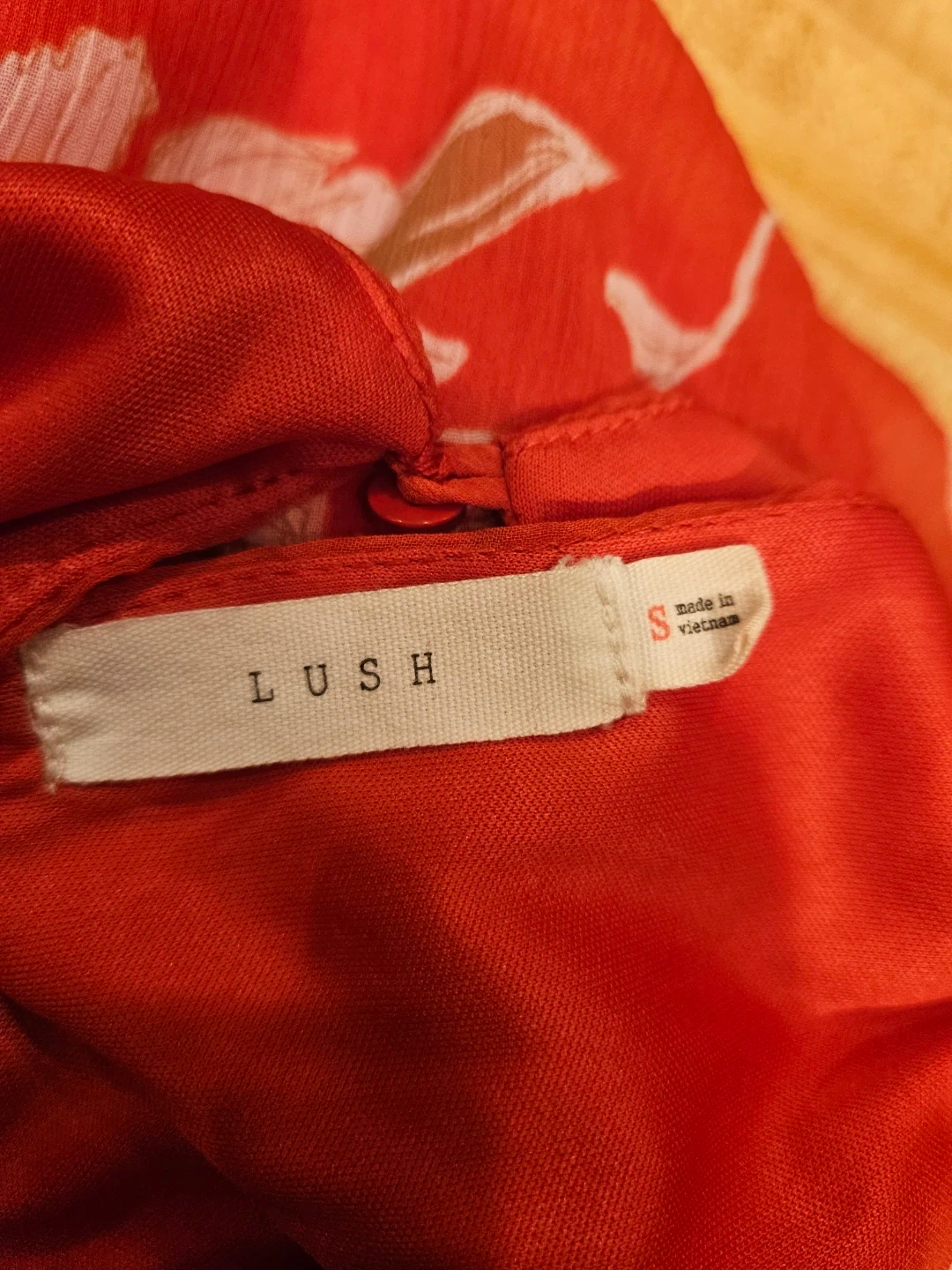 Selling a cute Lush halter dress in a vibrant red floral pattern! It's a size small and made of 100% polyester. Perfect for a sunny day out!