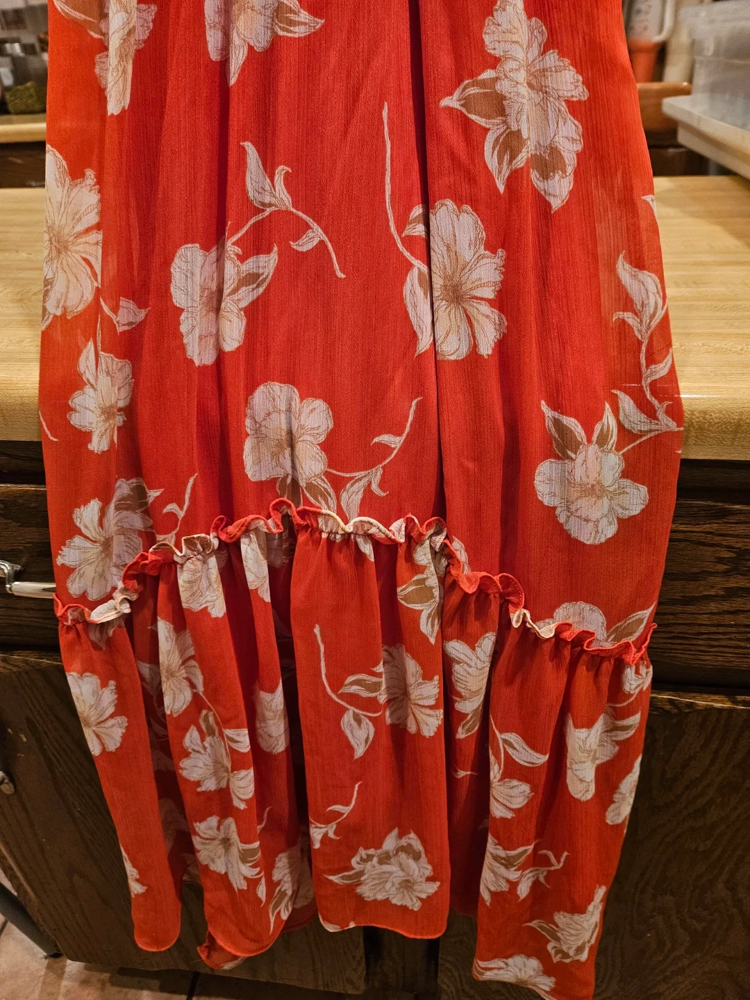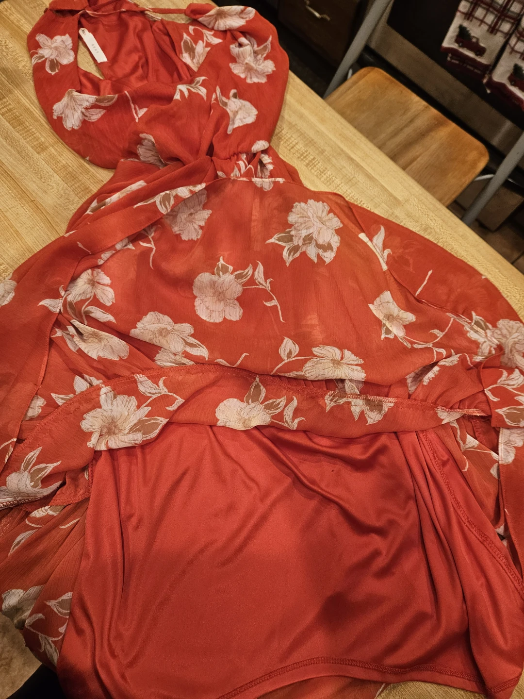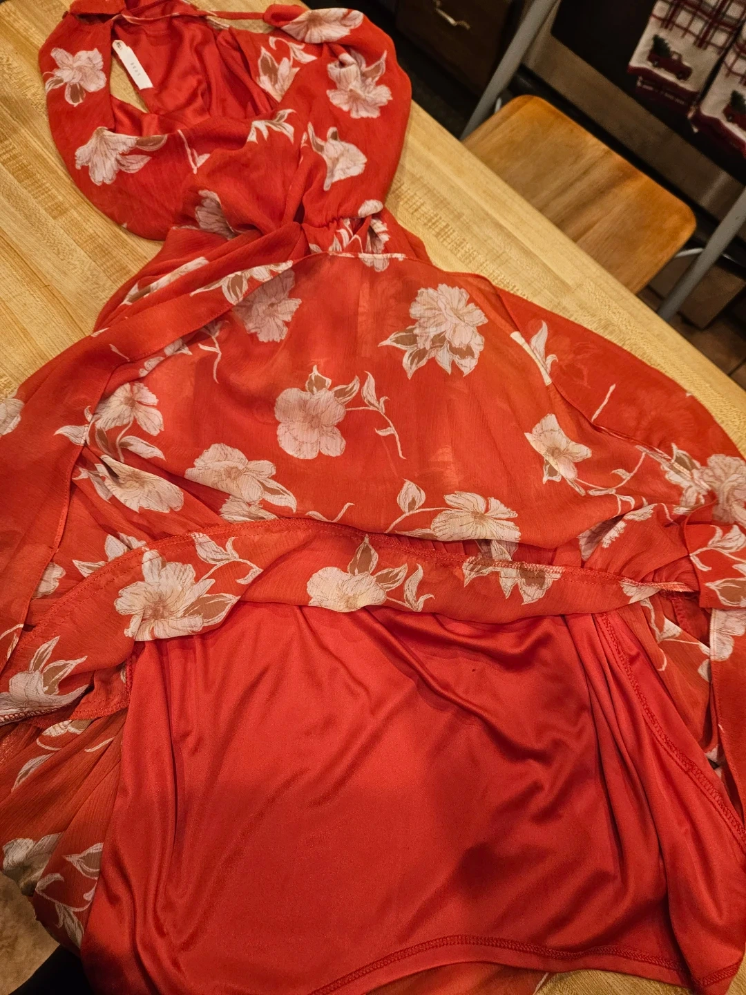 Lush Red Floral Halter Dress - Size S