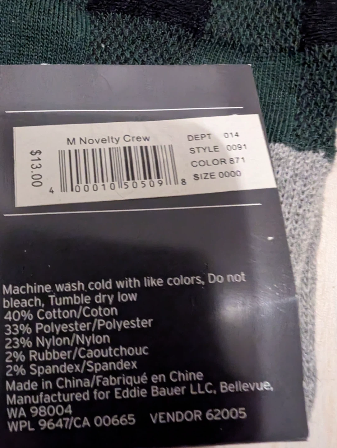 These Eddie Bauer crew socks are brand new with tags! They are a men's one size, fitting shoe sizes 6-12.5.