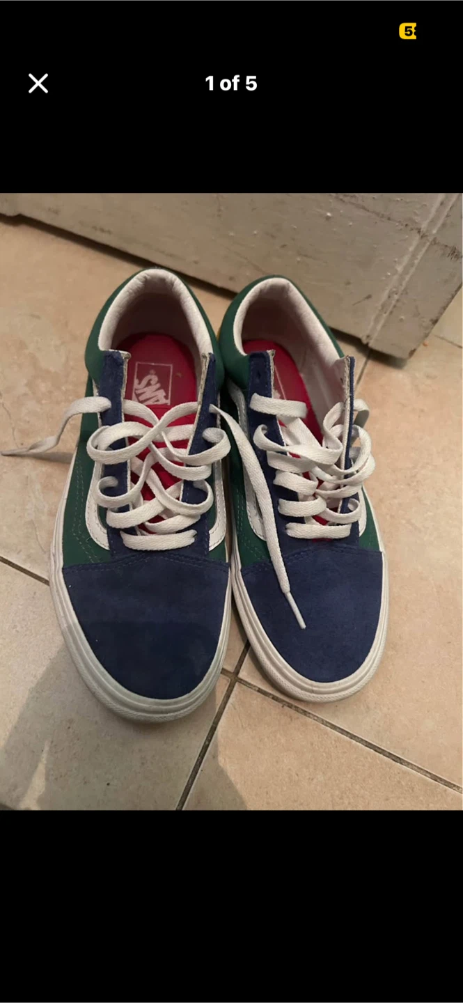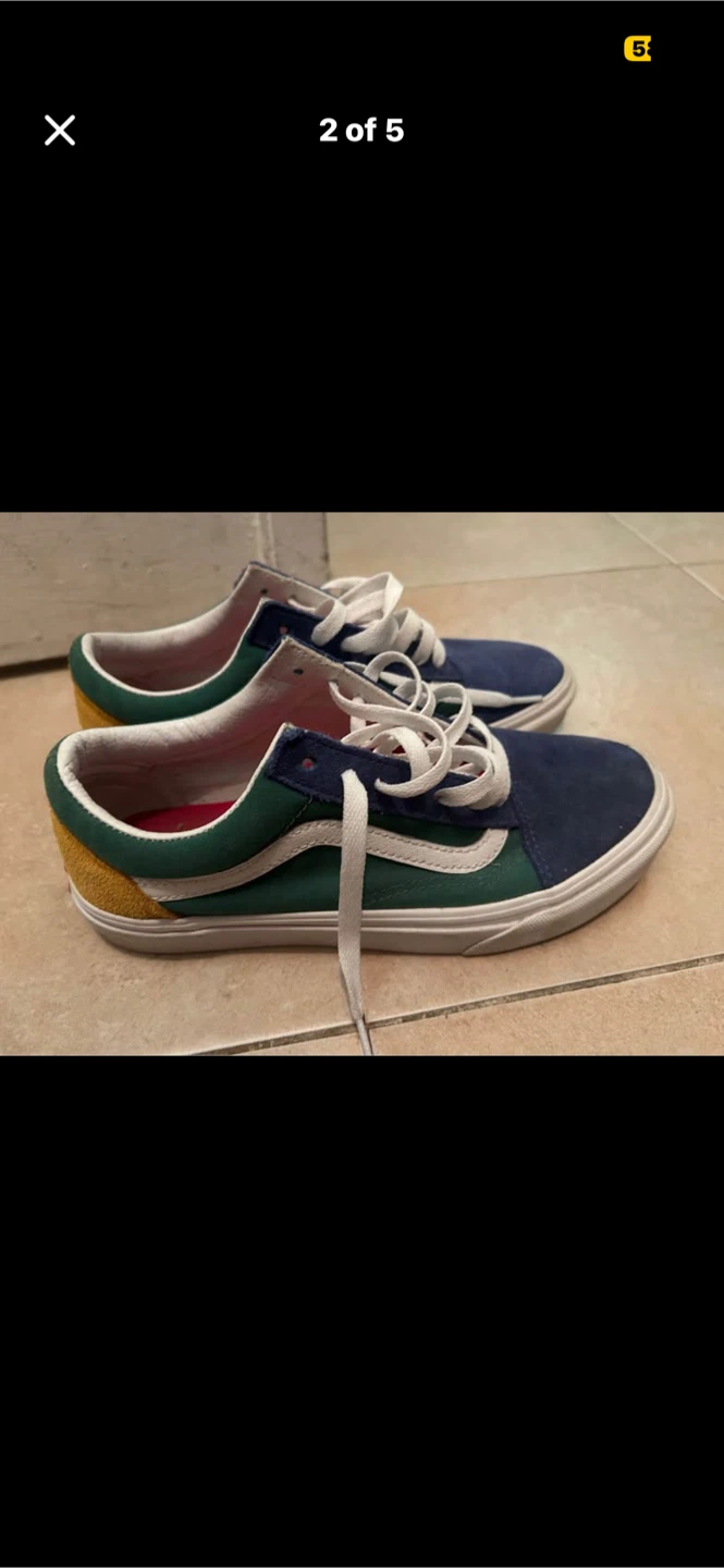 Selling a pair of Vans Old Skool Yacht Club sneakers! These colourful shoes feature a mix of blue, green, and yellow. They're in great shape and ready for a new owner!