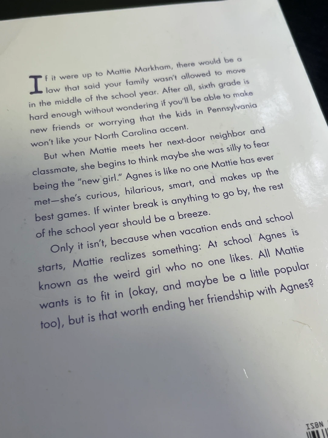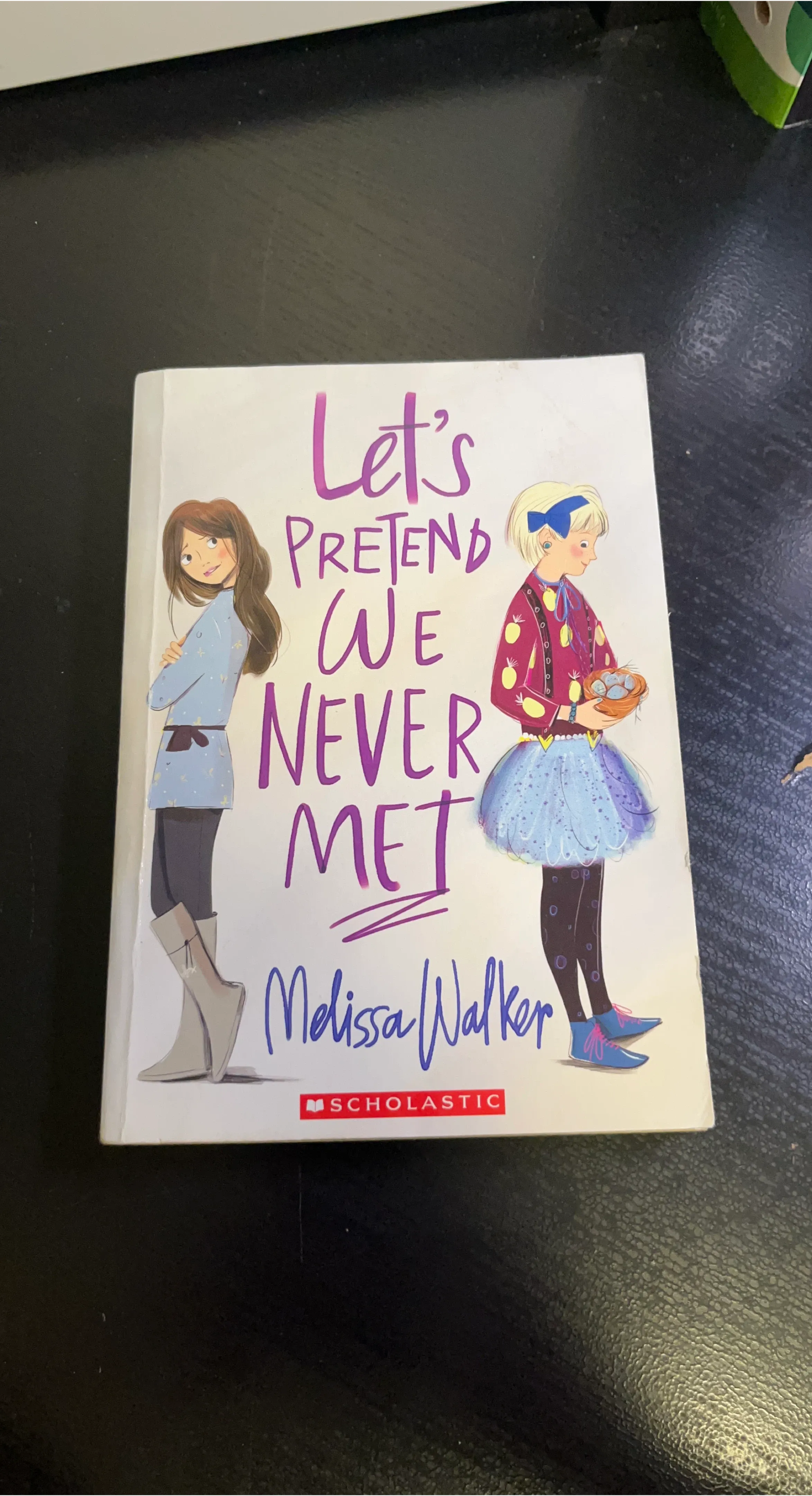 Selling the book "Let's Pretend We Never Met" by Melissa Walker. It's a Scholastic book about Mattie Markham and her experiences starting sixth grade in a new school. A fun read for young adults!