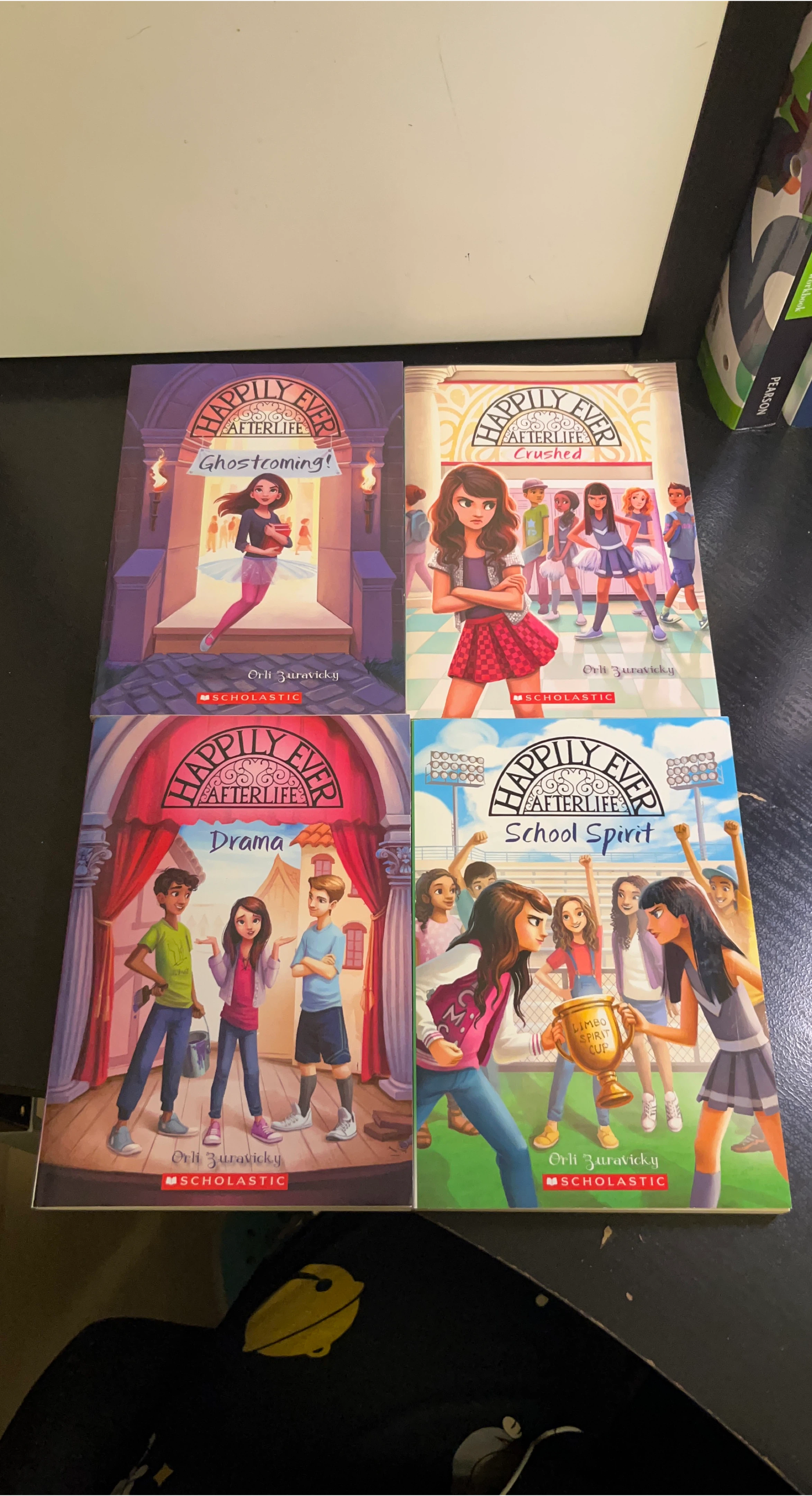 Selling a set of four books from the 'Happily Ever Afterlife' series by Orli Zuravicky! Includes: Ghostroming!, Crushed, Drama, and School Spirit. Perfect for readers in grades 4-7