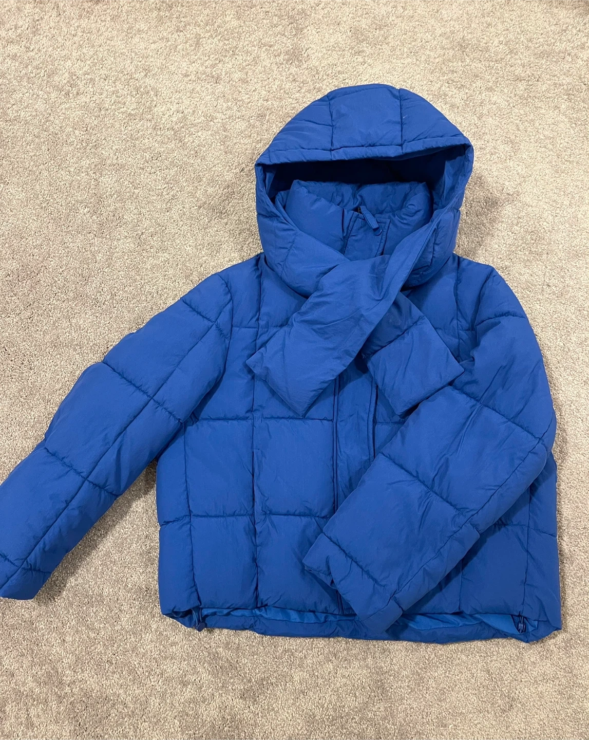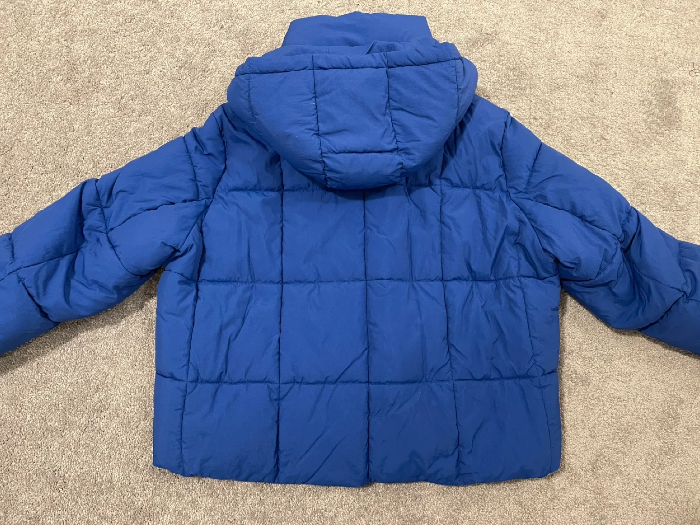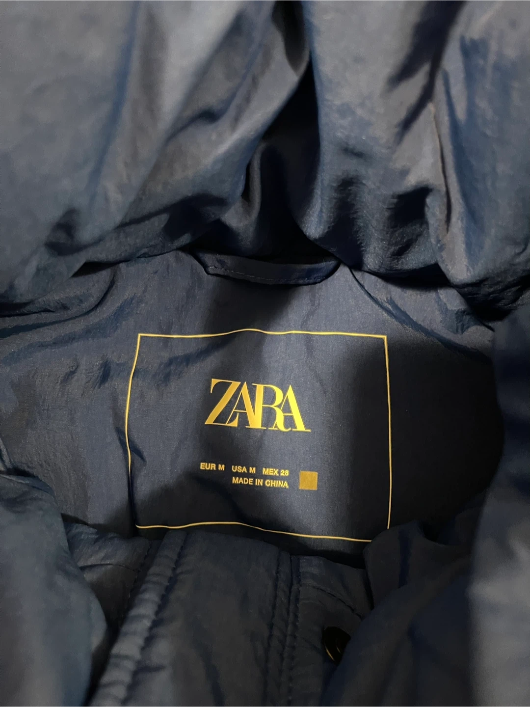 Selling a Zara blue puffer jacket in size M. It's in great condition and perfect for keeping warm during the colder months!