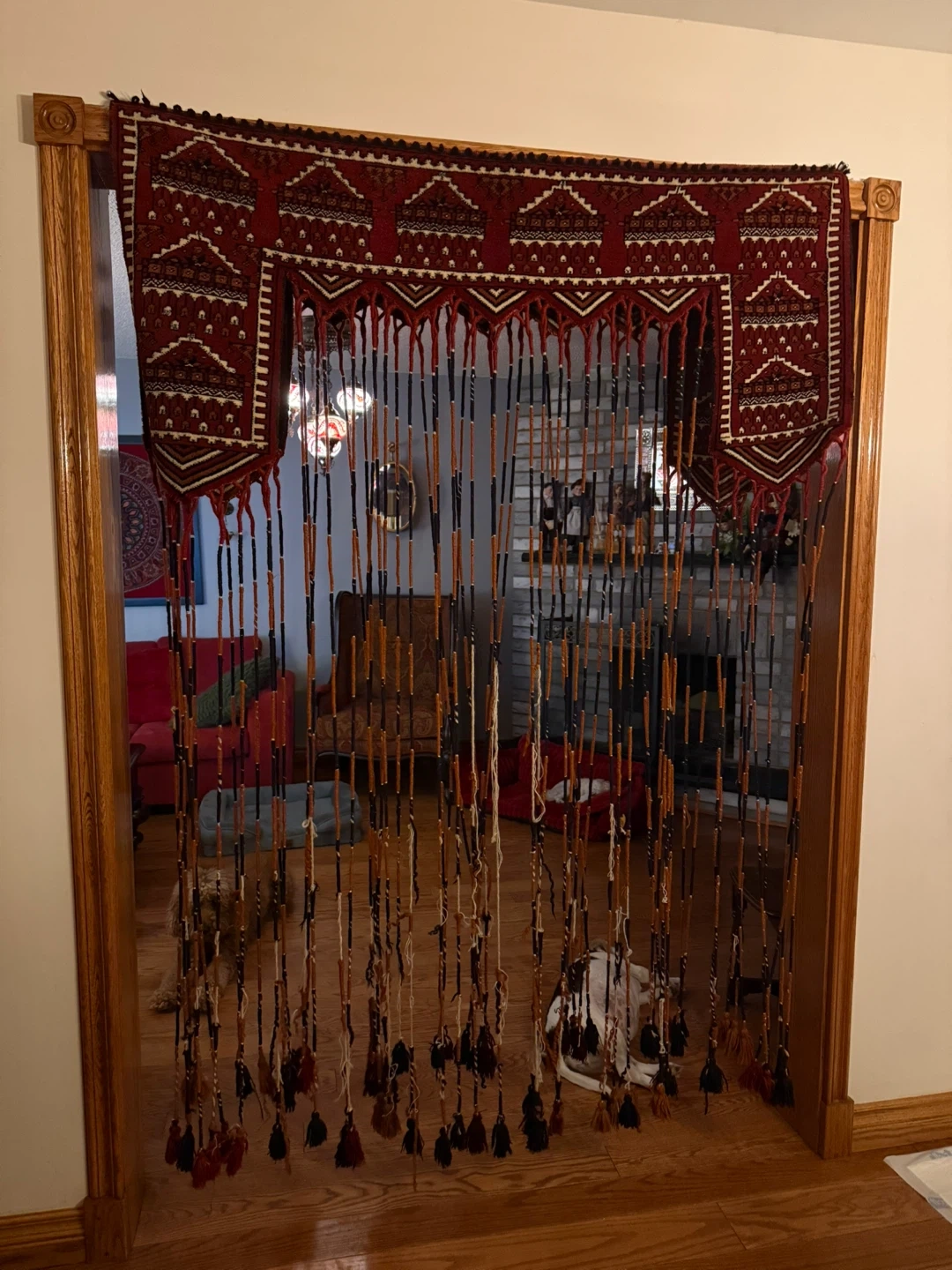 Red & Brown Beaded Doorway Curtain