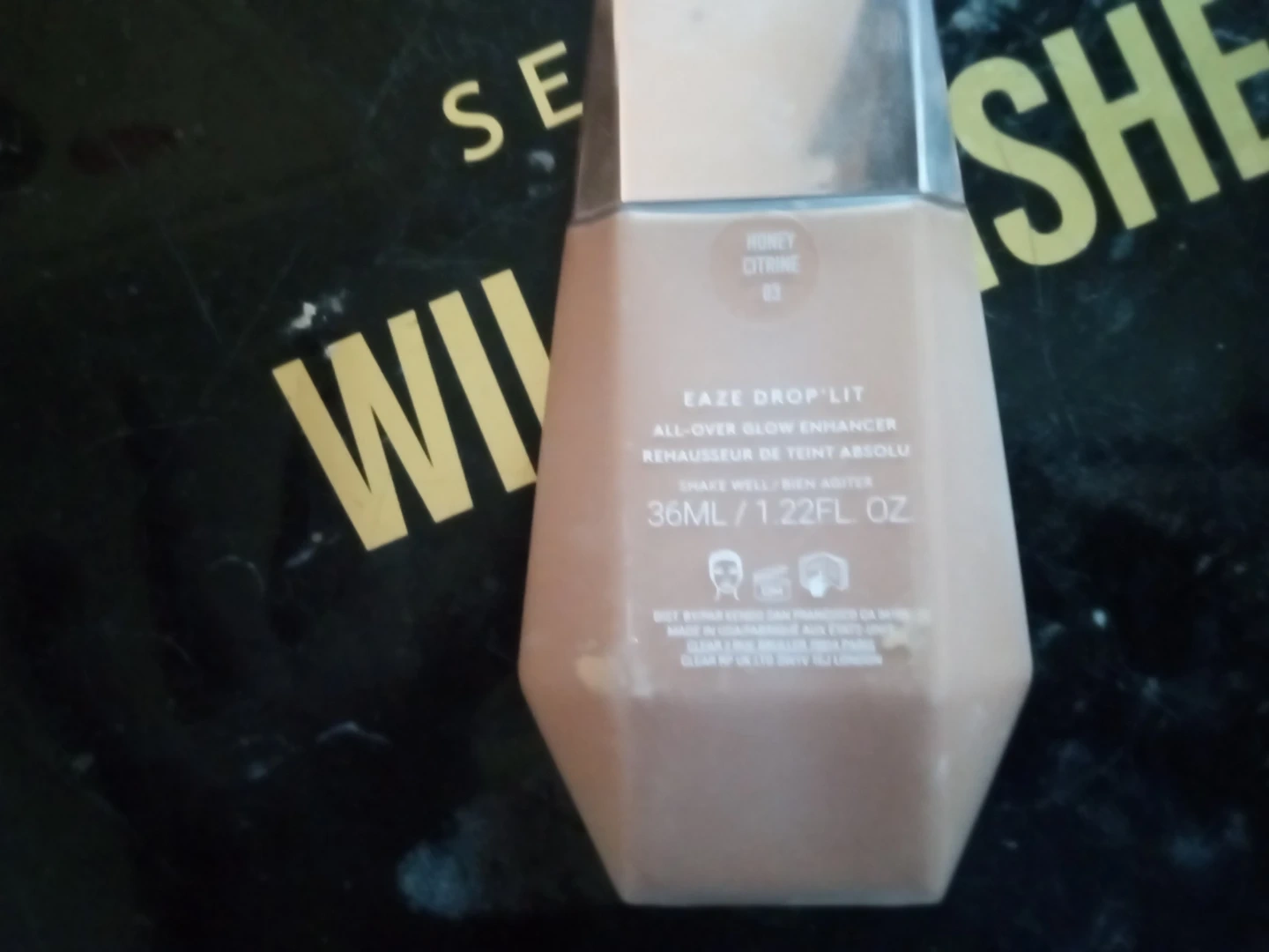 Selling a Fenty Beauty Eaze Drop'lit All-Over Glow Enhancer. It's in the shade Honey Citrine 02. The bottle contains 36ml / 1.22FL OZ of product. Shake well before use