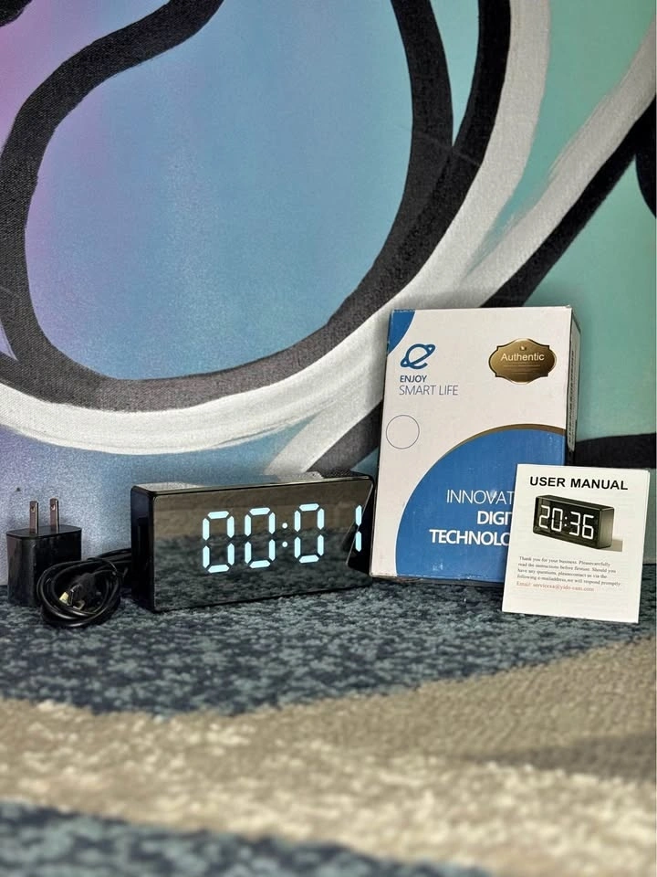 • Alarm & Snooze: Perfect for your bedside table. 🔔