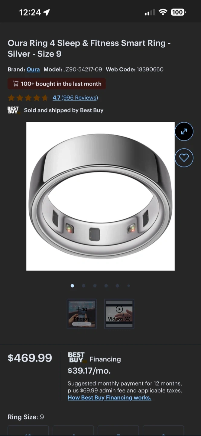 Selling an Oura Ring 4 in size 9. It comes with the original box!