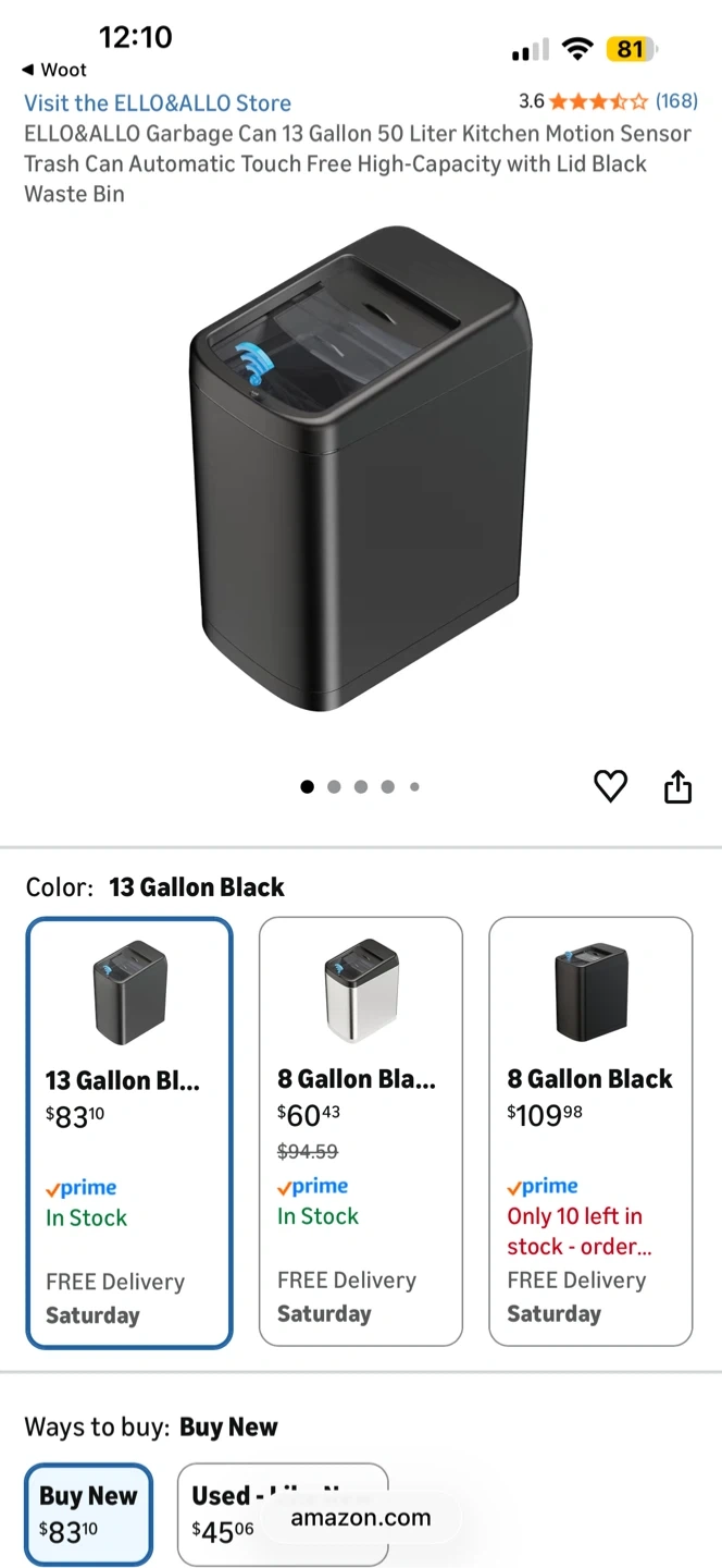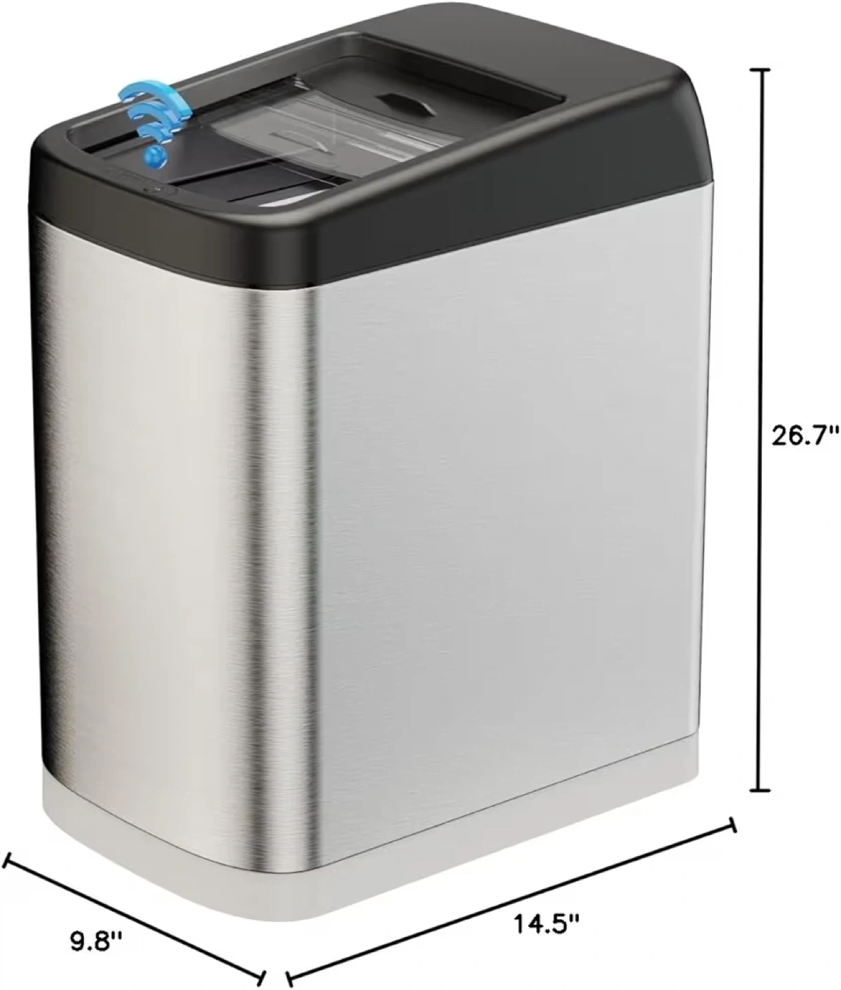 Selling an ELLO&ALLO 13 Gallon 50 Liter Kitchen Motion Sensor Trash Can. It's an automatic touch-free, high-capacity bin with a lid. Requires 4 AAA batteries NOT included!
